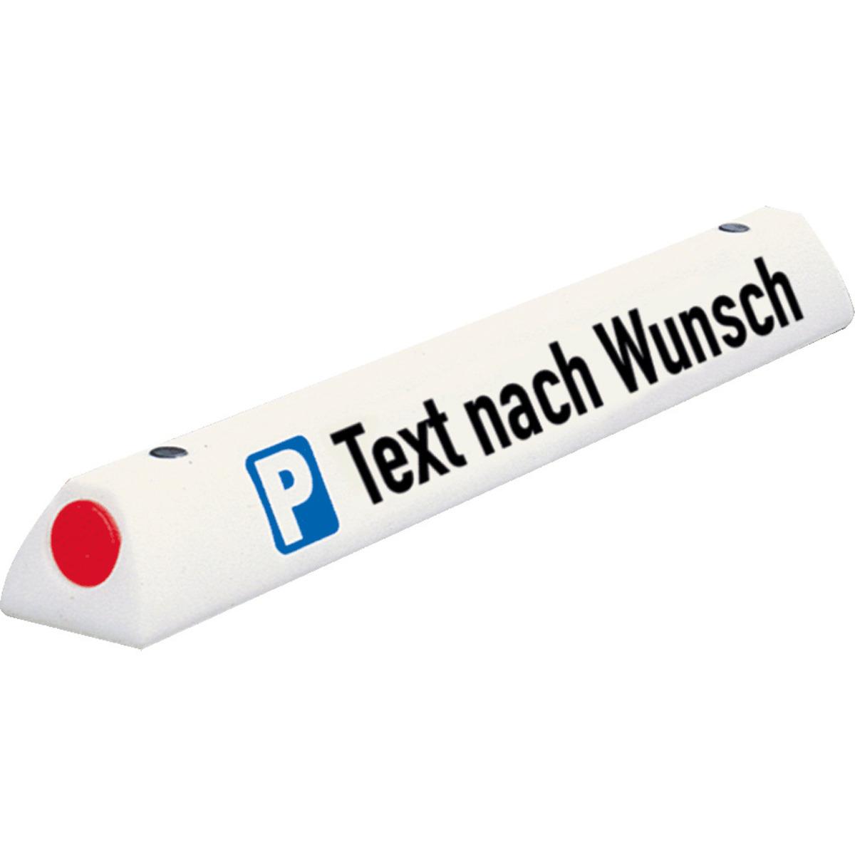 Auswahl: Parkplatzbegrenzung, Text nach Wunsch, 2 rote Reflektoren, weiß, Kunststoff, 900x100x90mm
