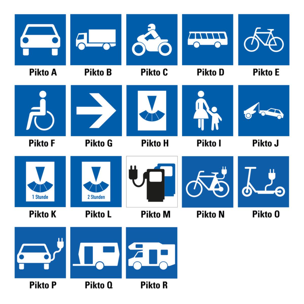 Parkplatzschild mit Piktogramm und Text nach Wunsch.