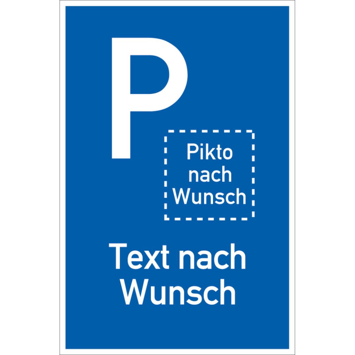 Auswahl: Parkplatzschild, mit Pikto und Text nach Wunsch, Aluminium, 400x600mm