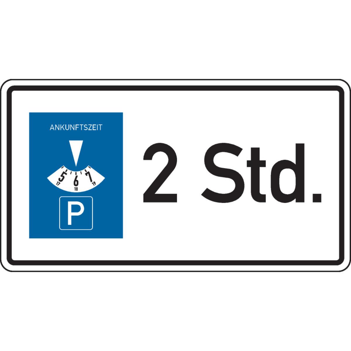 Auswahl: Parkplatzschild, Parkdauer max. 2 Stunden, Aluminium RA0, reflektierend, 600x330mm