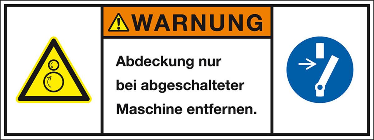 KSIGN Produktsicherheitsschild Signalwort: Warnung Abdeckung nur bei abgeschalteter Maschine entfernen selbstklebende Folie