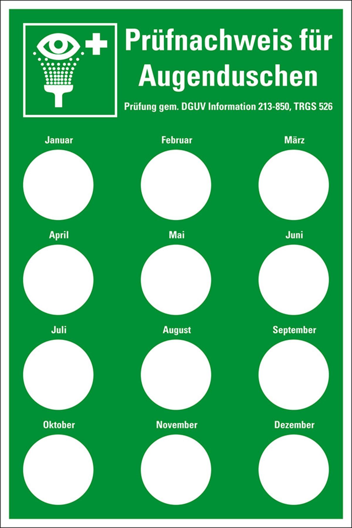 Auswahl: Prüfnachw.für Augenduschen DGUV Information 213-850, Prüfpl.Ø20mm, Folie, 100x150mm