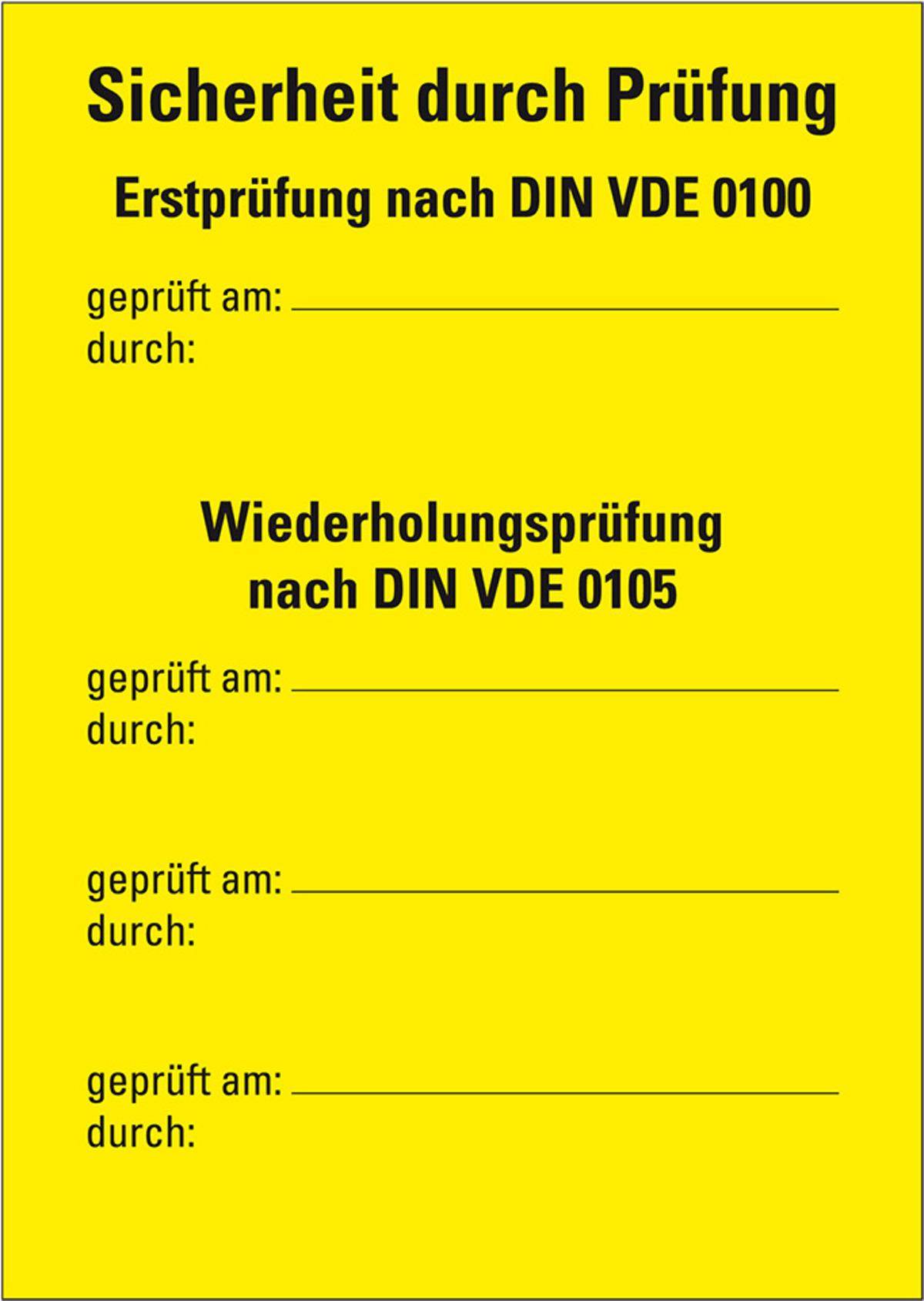 Auswahl: Prüfnachweis Typ B, Erstprüfung nach VDE 0100/0105, Folie, ablösbar, 105x148mm