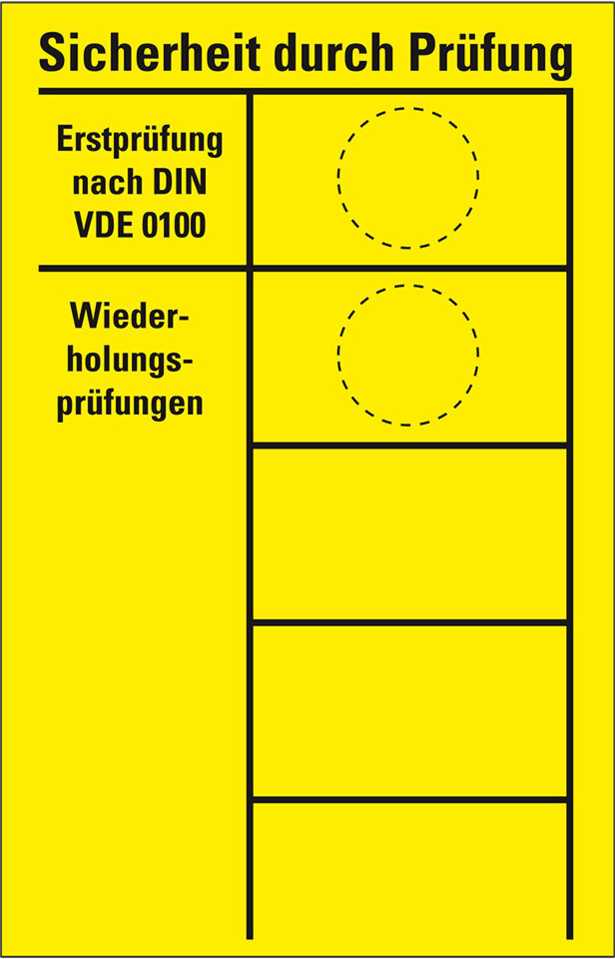 Auswahl: Prüfnachweis Typ A, Erstprüfung nach VDE 0100, Folie, ablösbar, 90x140mm