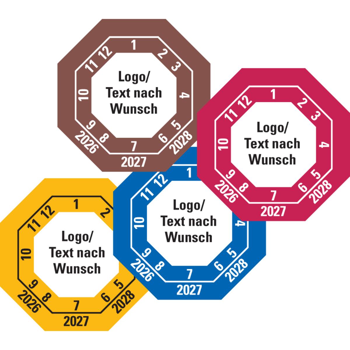 Auswahl: Prüfplakette nach Wunsch, Layout 105, Dokumentenfolie, 30x30mm, 18/Bogen