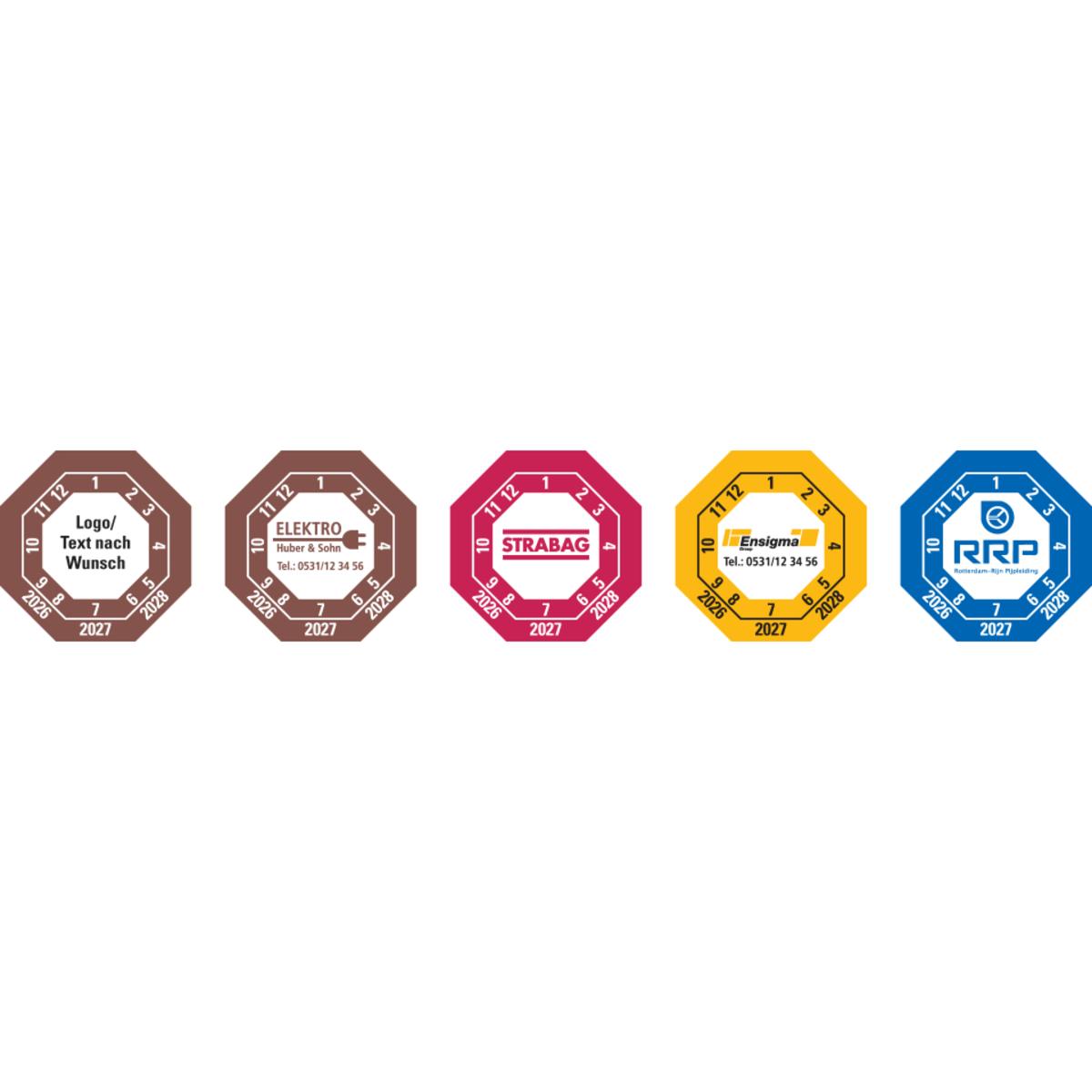 Prüfplakette Layout 105 Text und Logo nach Wunsch und bis zu drei Farben