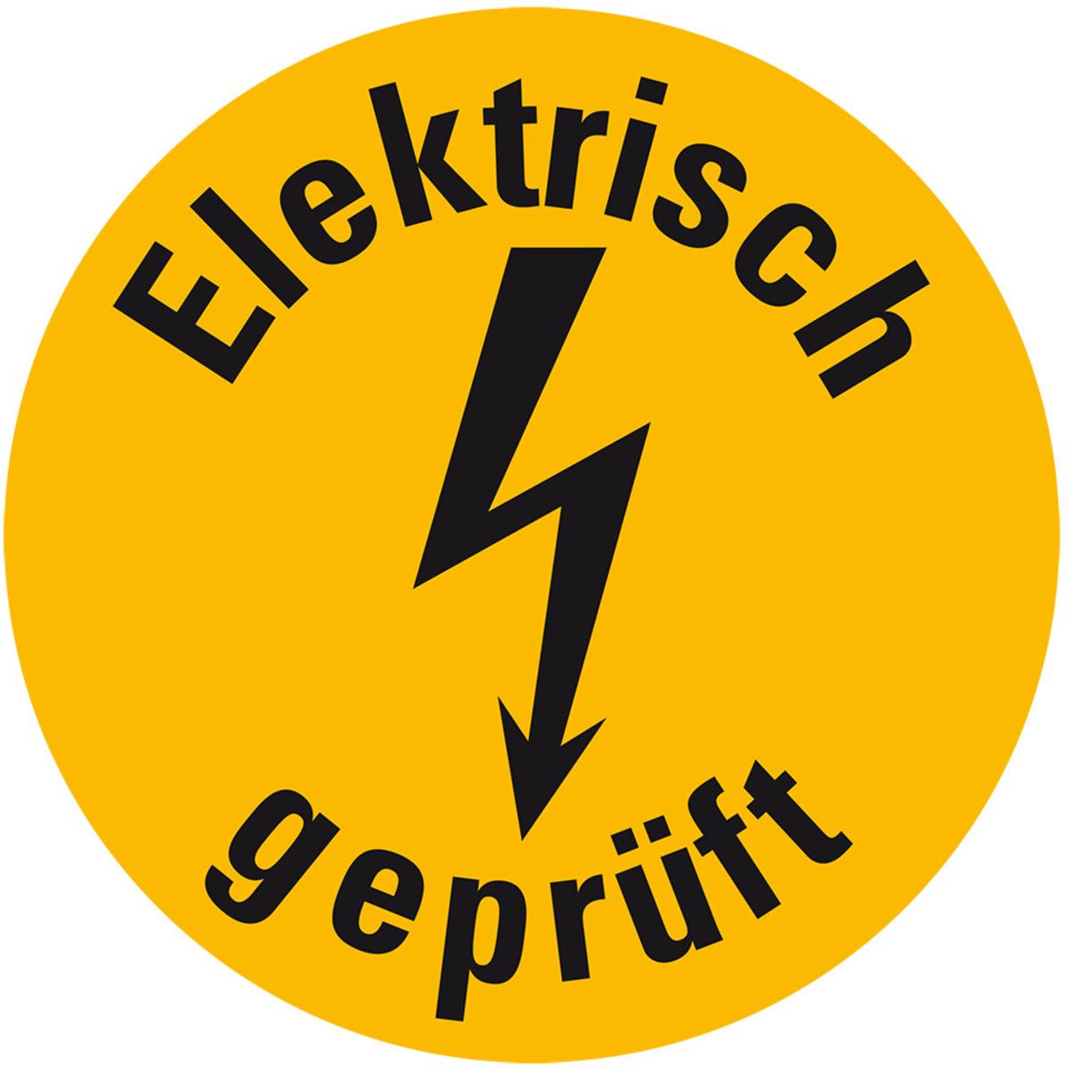 Auswahl: Prüfplakette Elektrisch geprüft Blitzpfeil, gelb, Dokumentenfolie, Ø10mm, 128/Bogen