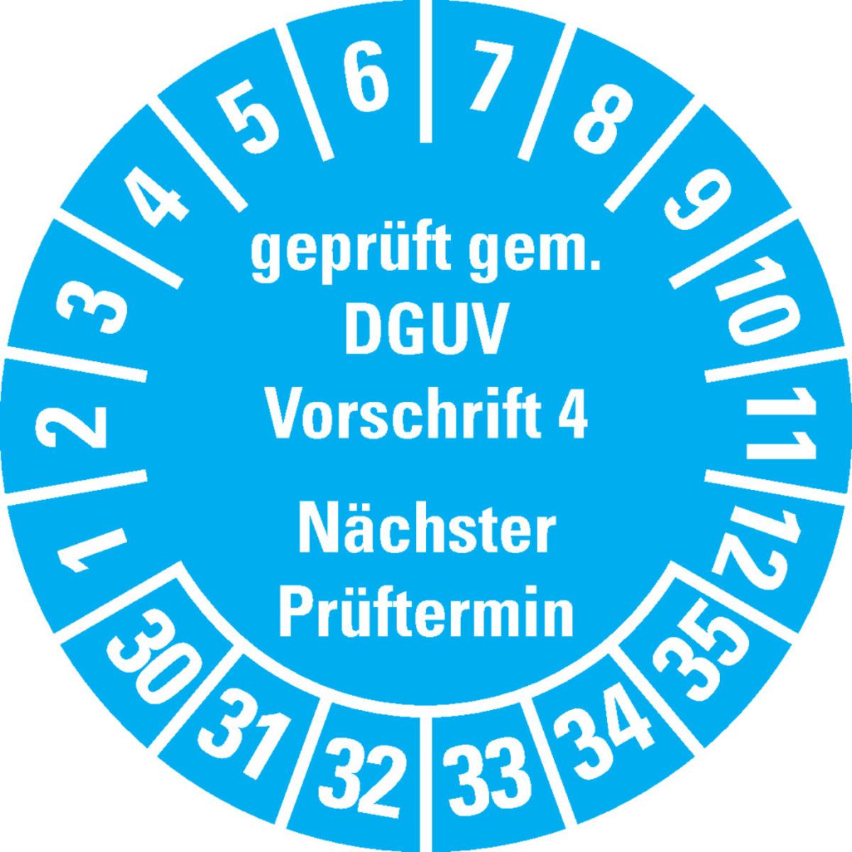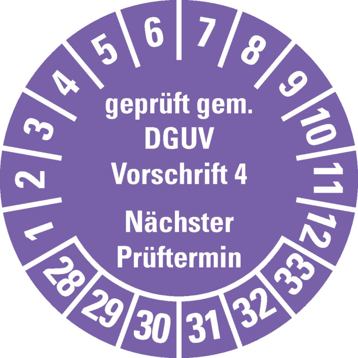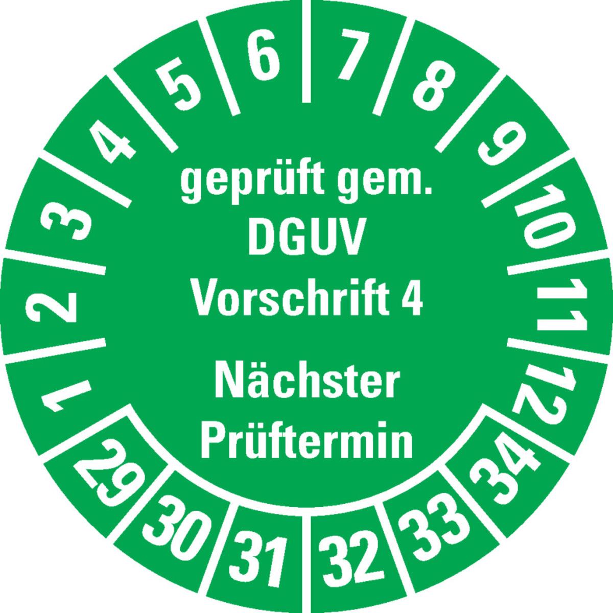 Prüfplakette "Geprüft nach DGUV Vorschrift 4" zur Prüfung von ortsfesten elektrischen Anlagen, zur schnellen Sichtung des nächsten Prüftermins