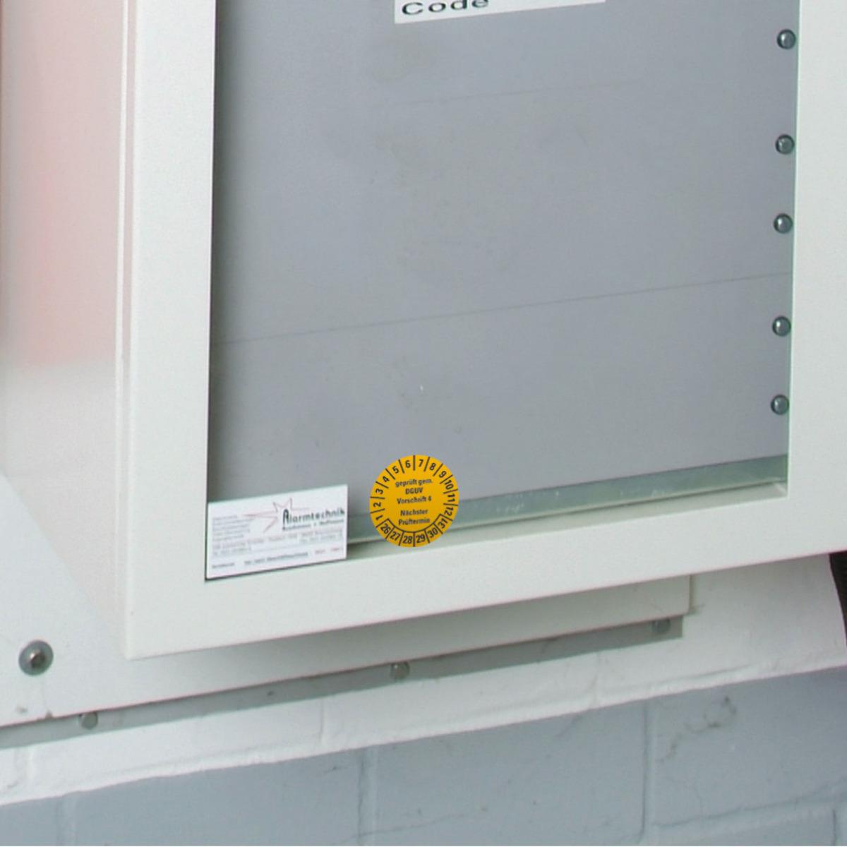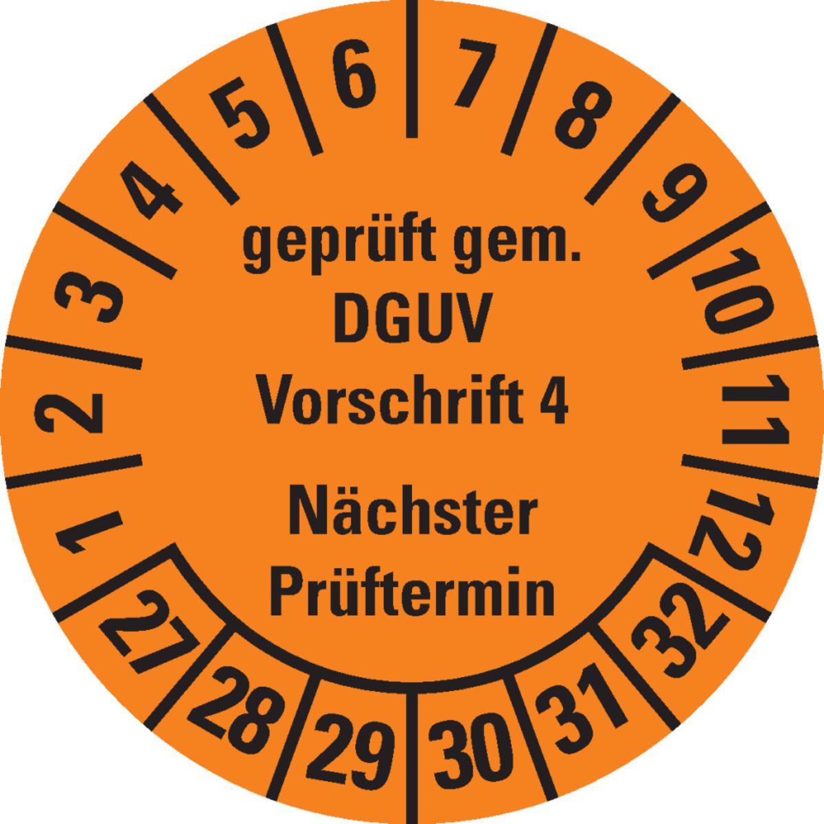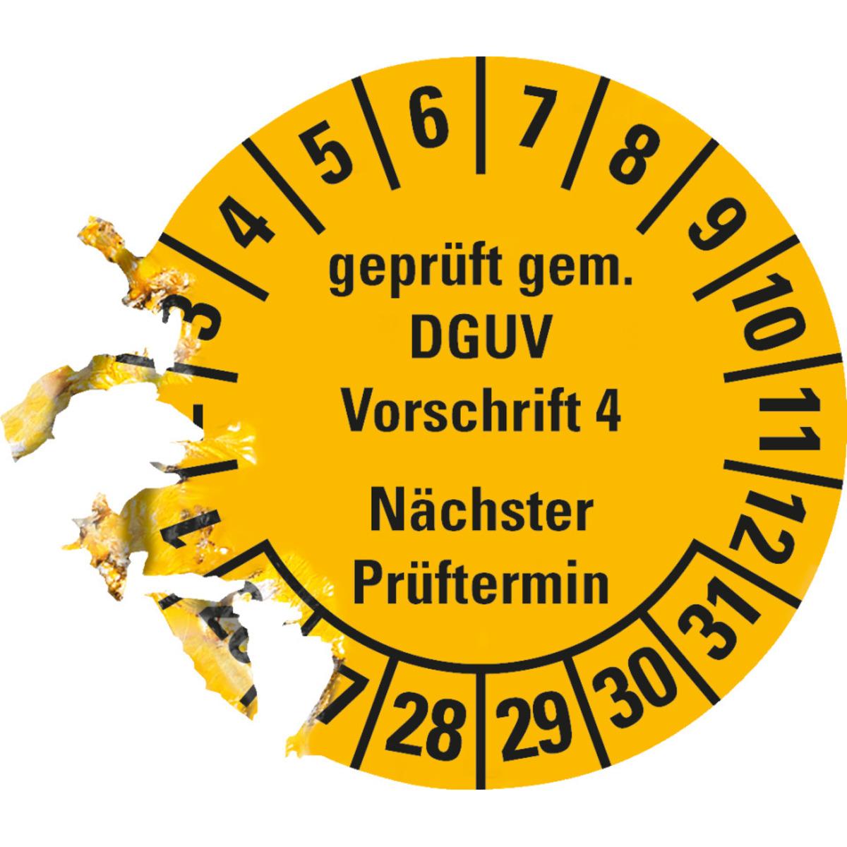 Prüfplakette "Geprüft nach DGUV Vorschrift 4" zur Prüfung von ortsfesten elektrischen Anlagen, zur schnellen Sichtung des nächsten Prüftermins