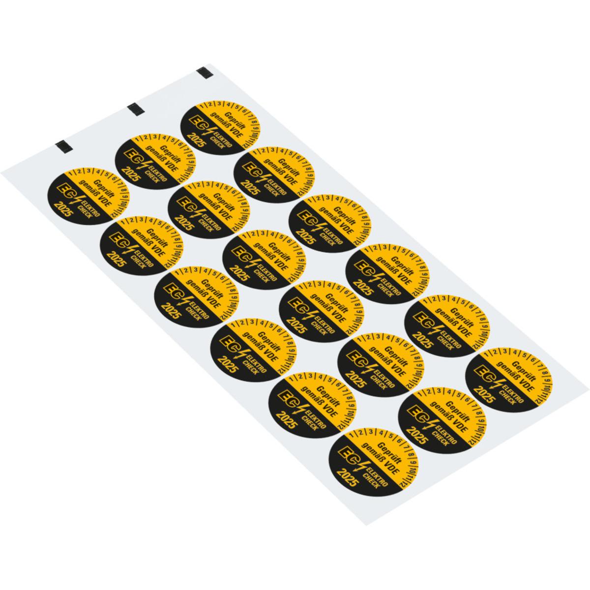 Auswahl: Prüfplakette Geprüft gemäß VDE EC ELEKTRO CHECK, 2025, Dokufolie, Ø30mm, 18/Bogen