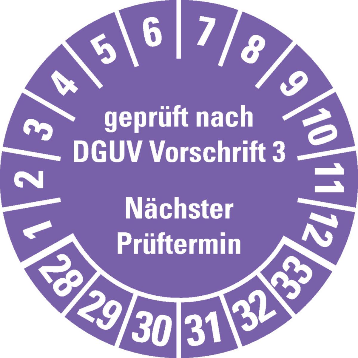 KSIGN Prüfplakette geprüft nach DGUV Vorschrift 3, Nächster Prüftermin Ø 30 mm Cellulose-Folie Bogen