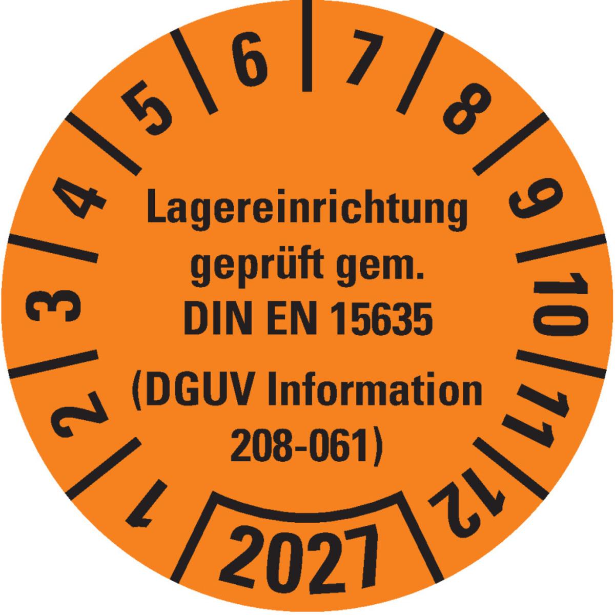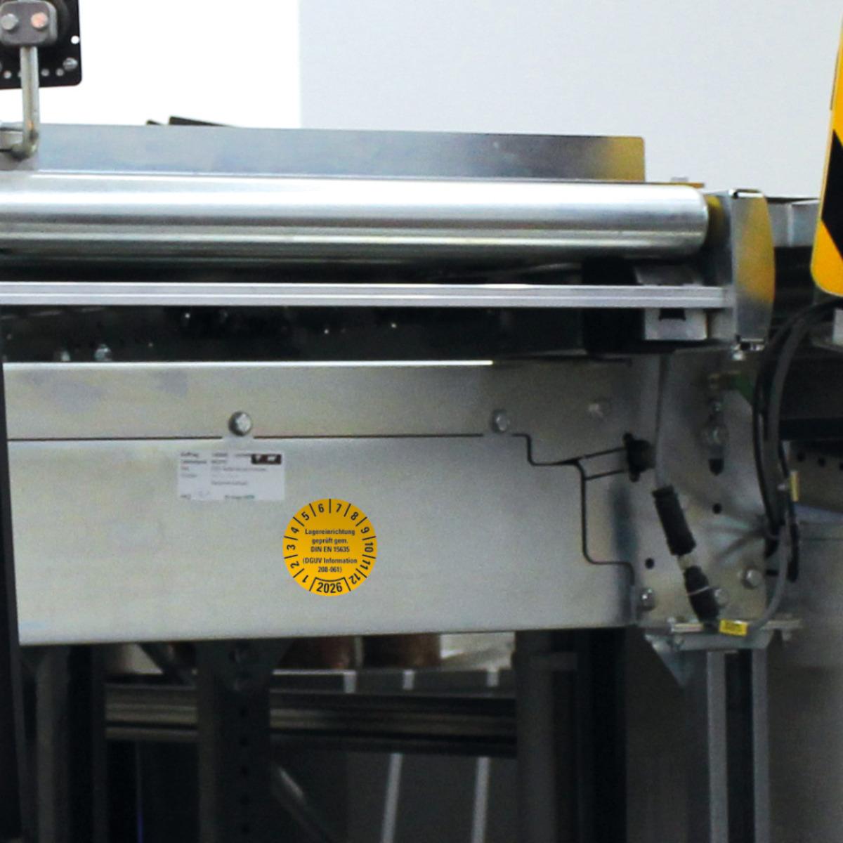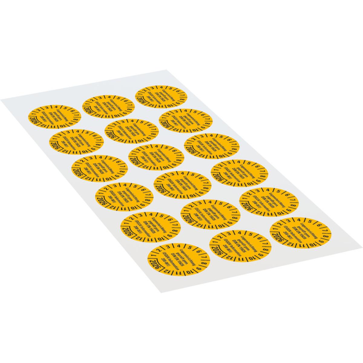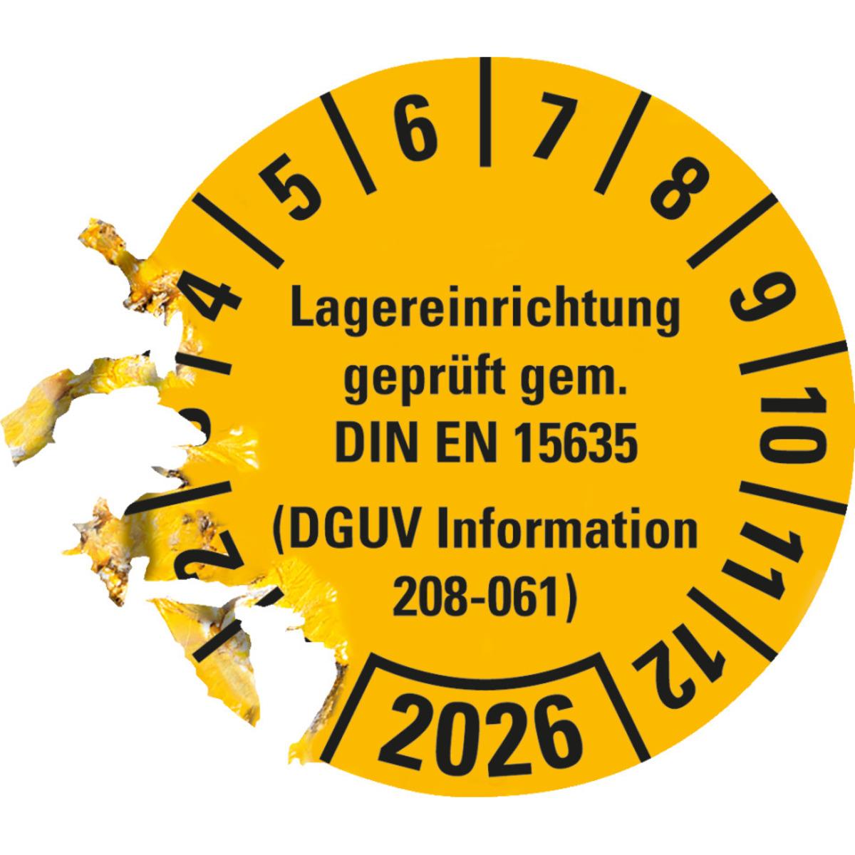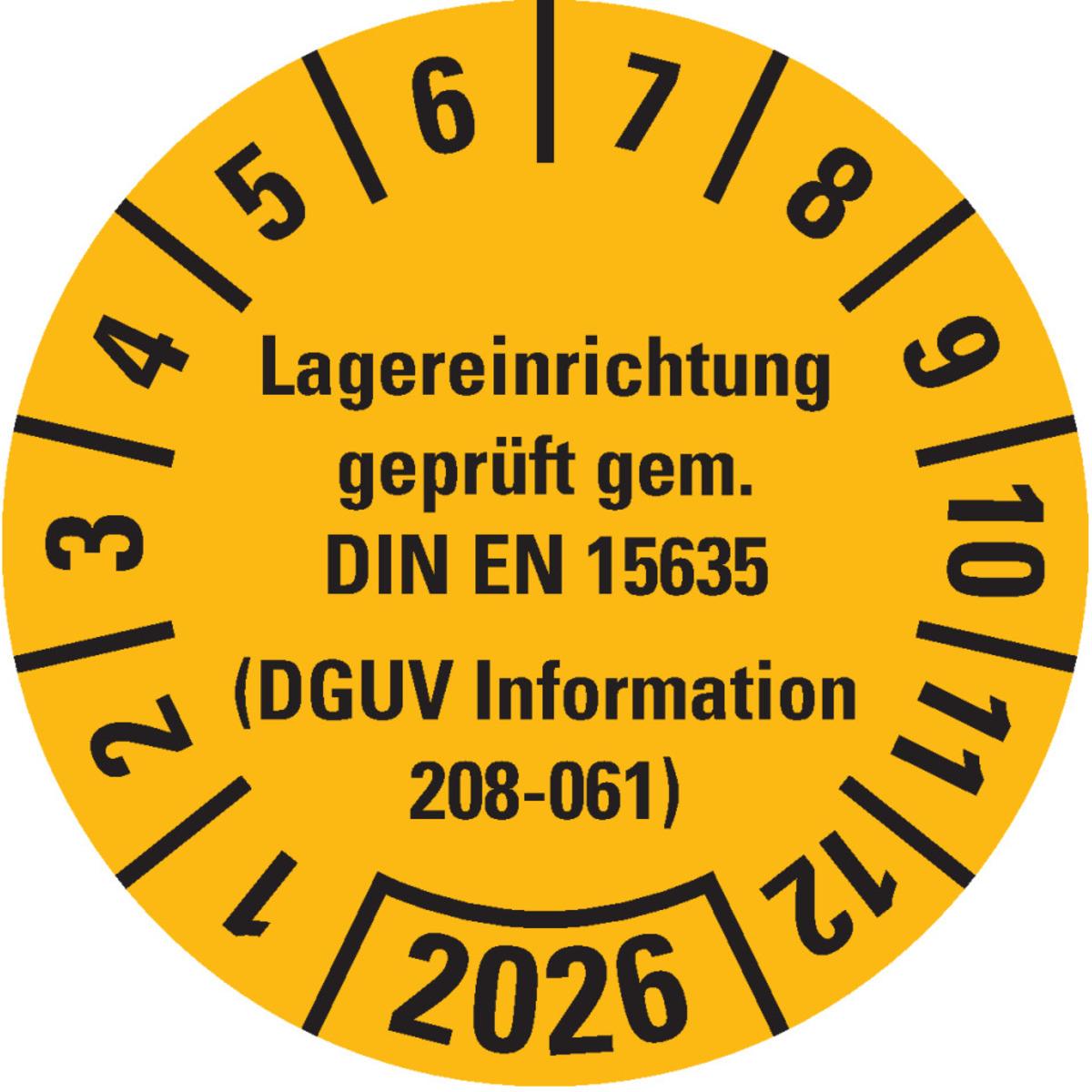 Auswahl: Prüfpl.Lagereinrichtung, DGUV Info.208-061, 2026, gelb, Dokumentenfolie, Ø30mm, 18/BOG