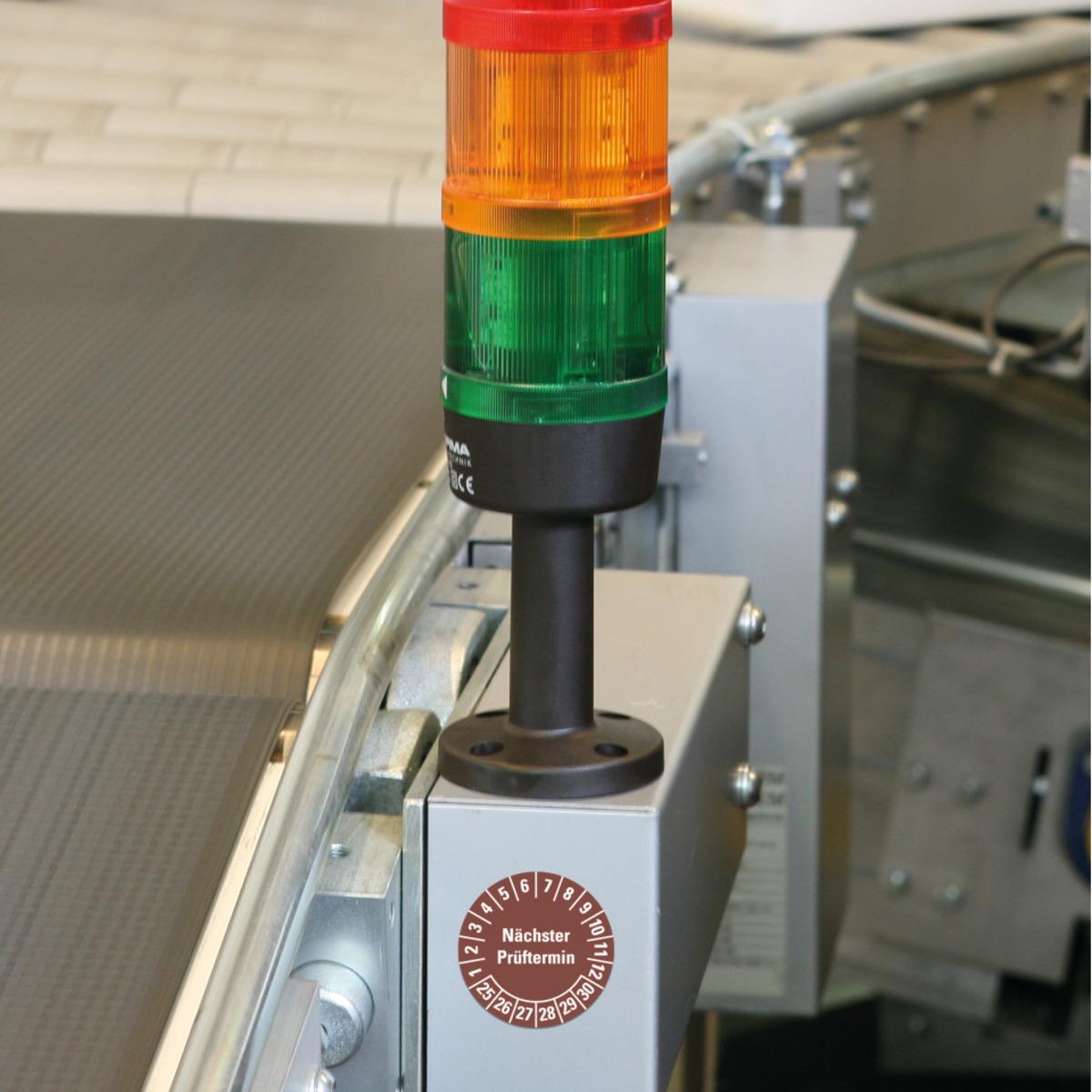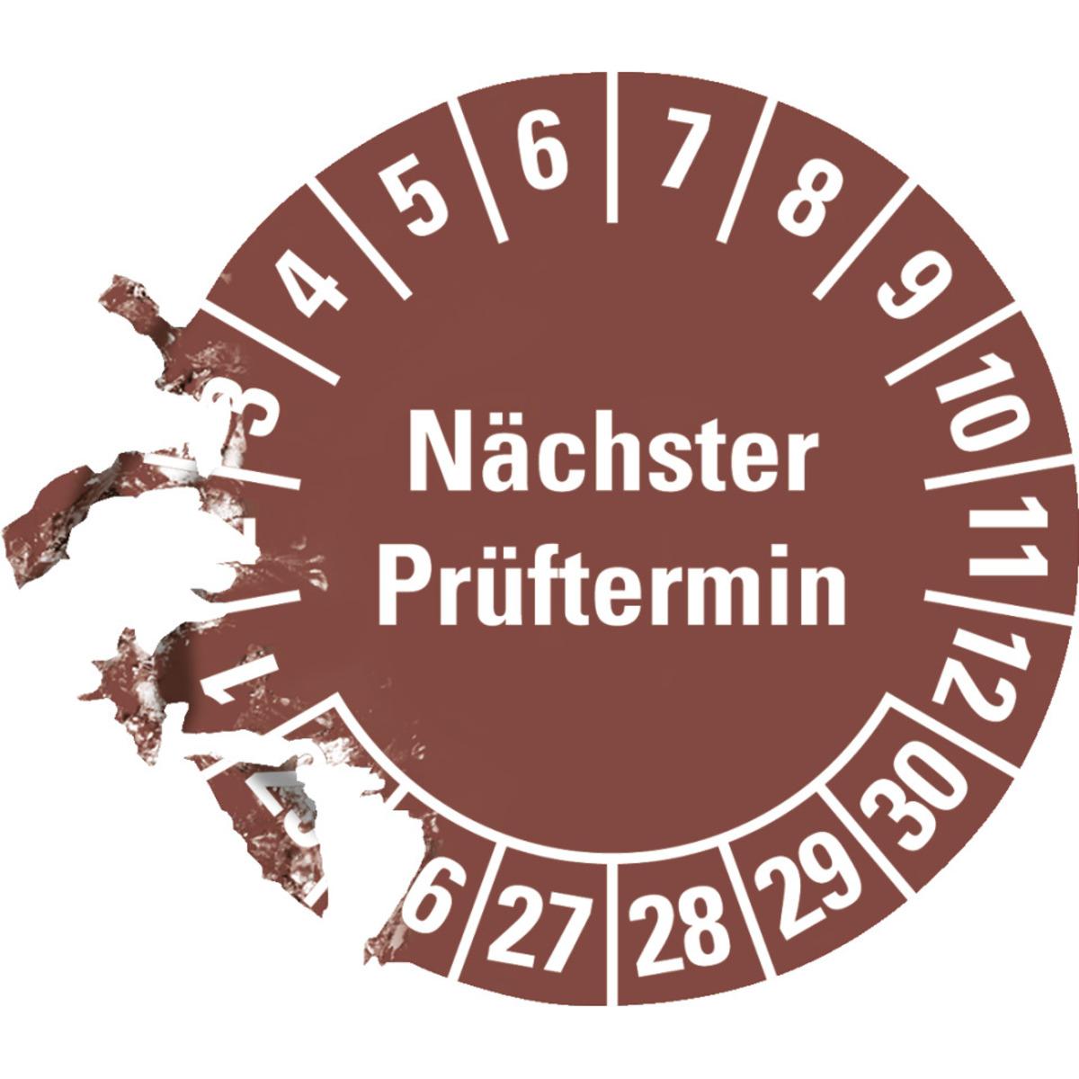 Auswahl: Prüfplakette Nächster Prüftermin, 25-30, braun, Dokumentenfolie, Ø 30mm, 18/Bogen