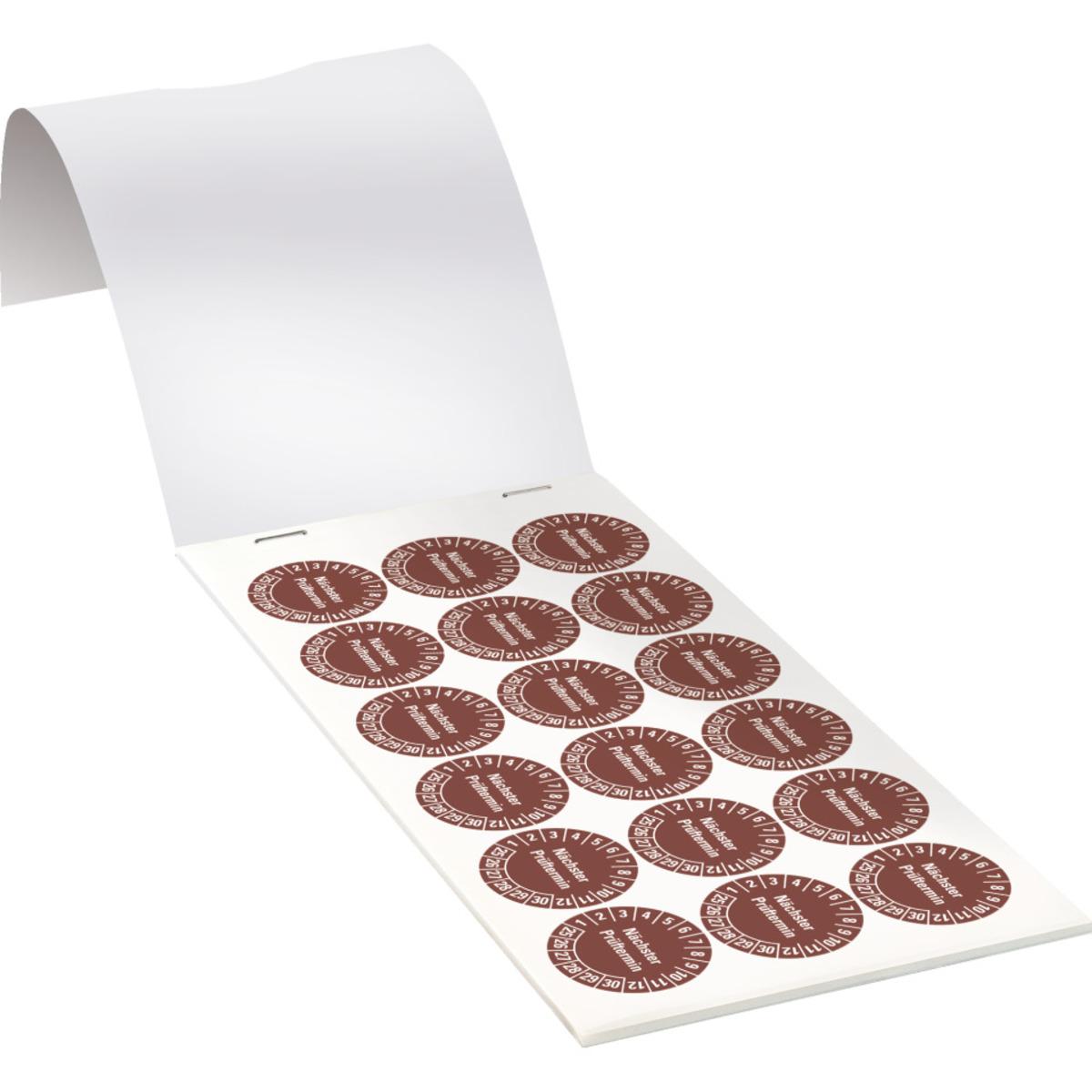 Auswahl: Prüfplakette Nächster Prüftermin, 25-30, braun, Dokufolie, Ø 30mm, 108/Heft