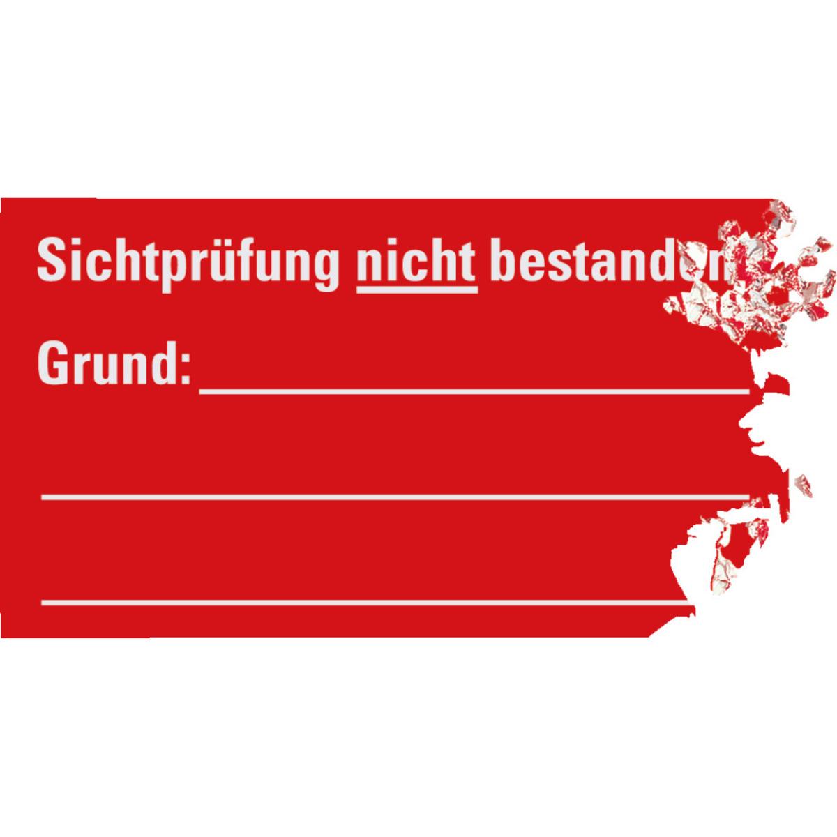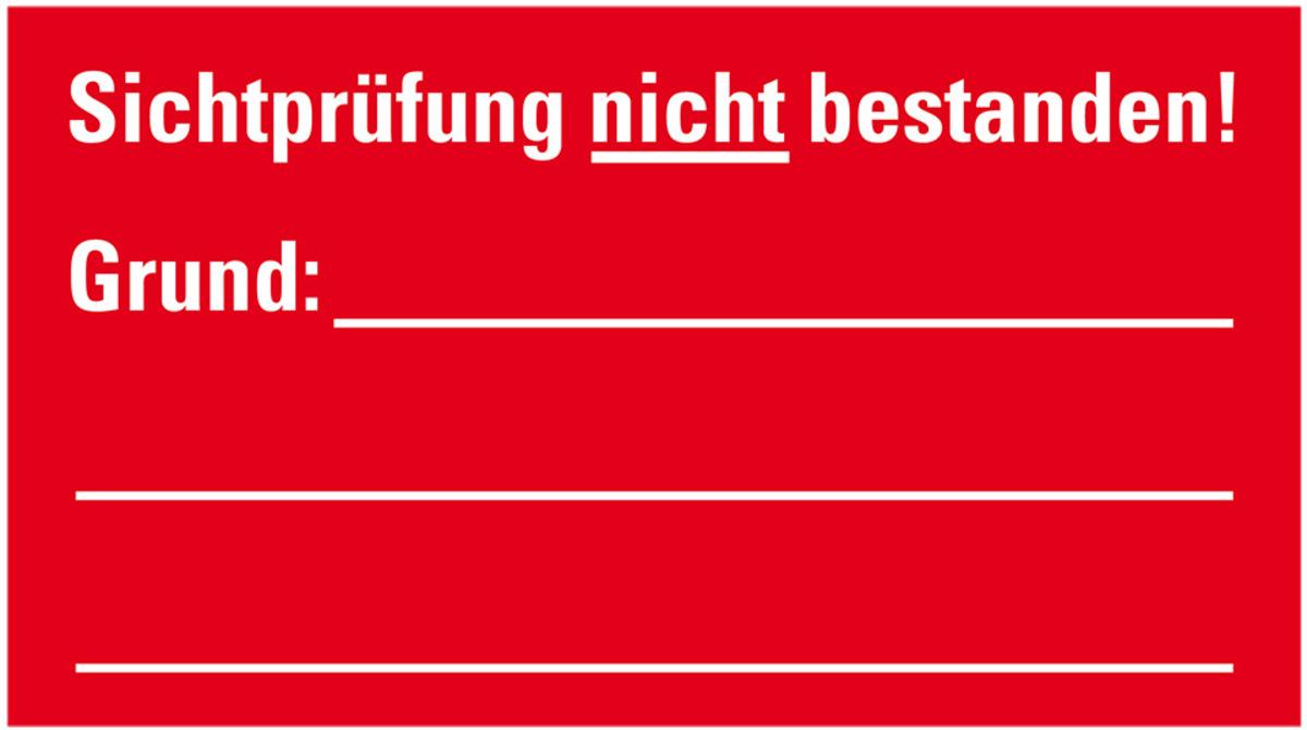 Auswahl: Prüfpl.Sichtprüfung nicht bestanden, Grund, rot/weiß, Dokufolie, 45x25mm, 12/Bogen
