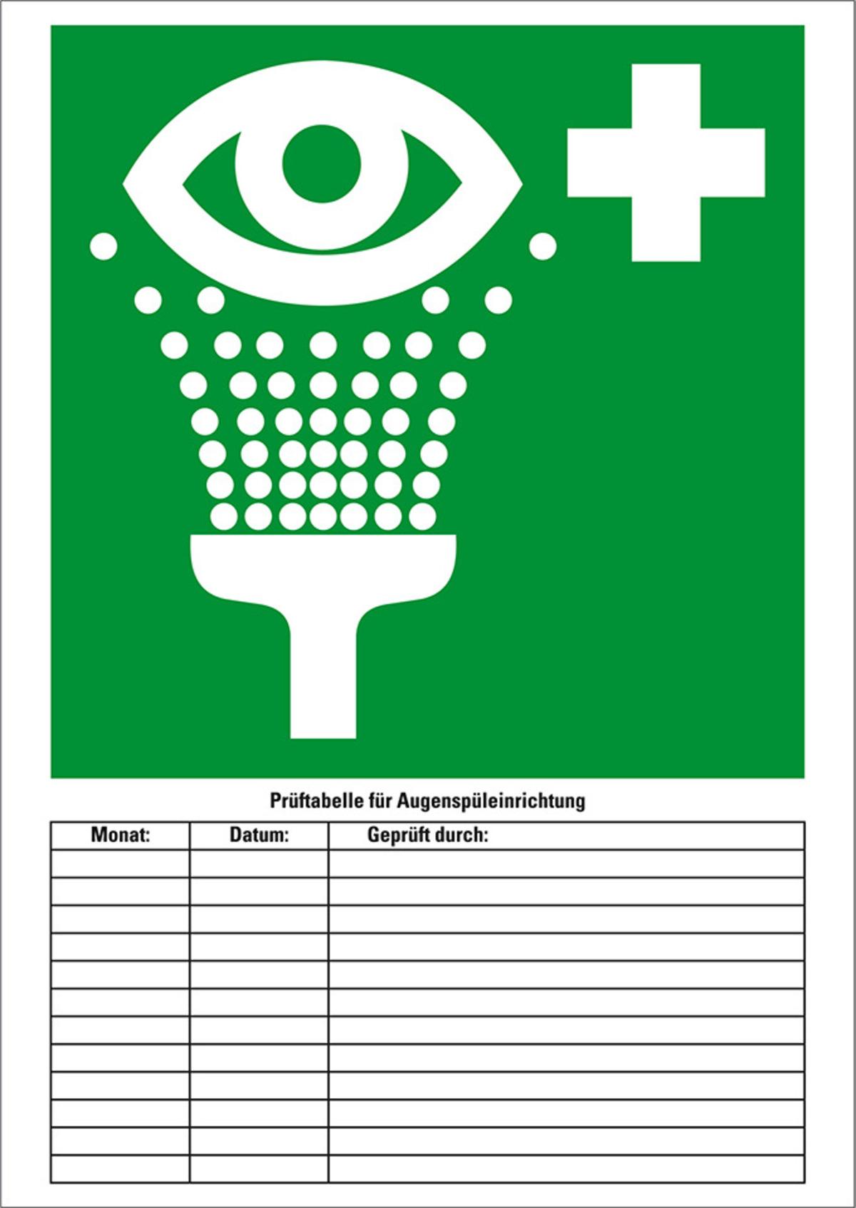 Prüftafel zur Nachhaltung von Prüfungen an Augenduschen