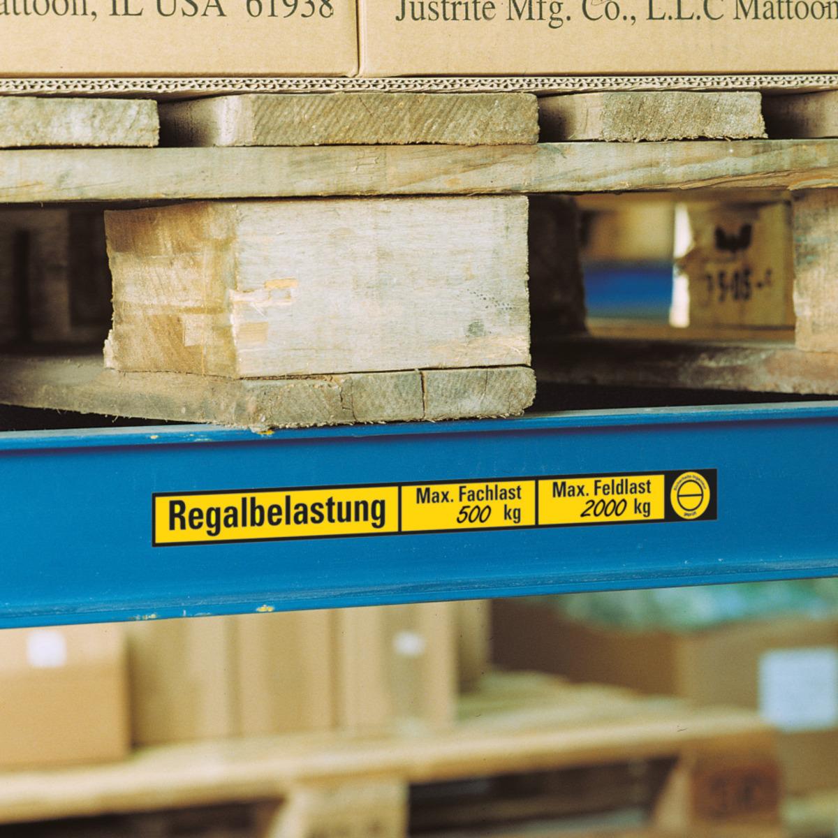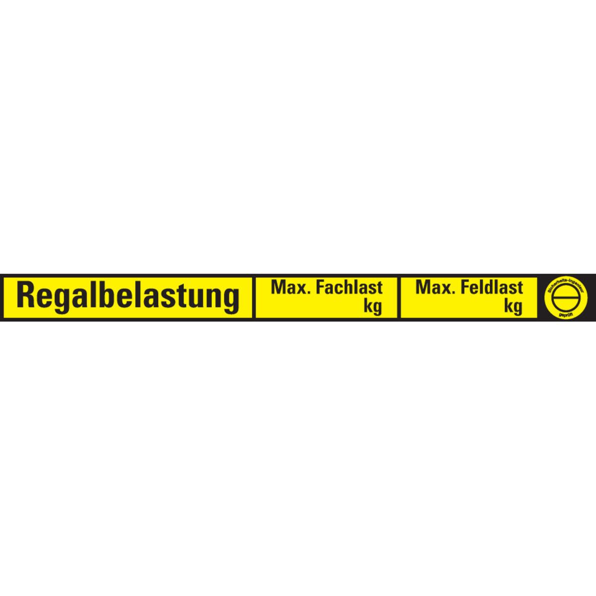 Beschriftbarer Regalbelastungsaufkleber mit Feld für Prüfnachweis