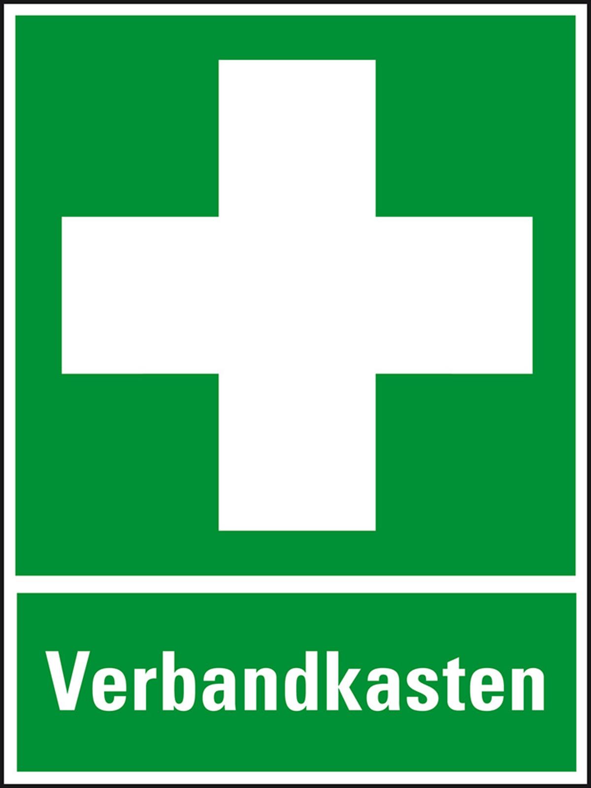 Rettungszeichen zur Standortkennzeichnung von Erste-Hilfe-Materialien mit Zusatztext Verbandkasten