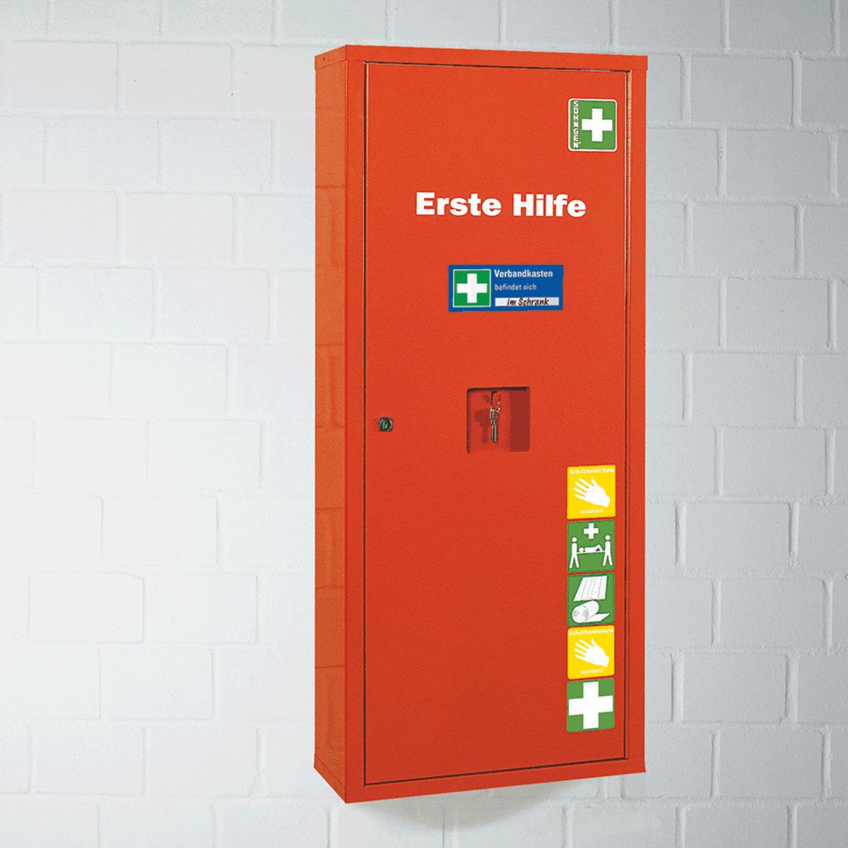 Rettungszeichen, welches im Notfall die Ortsangabe eines Verbandskastens kennzeichnet.
