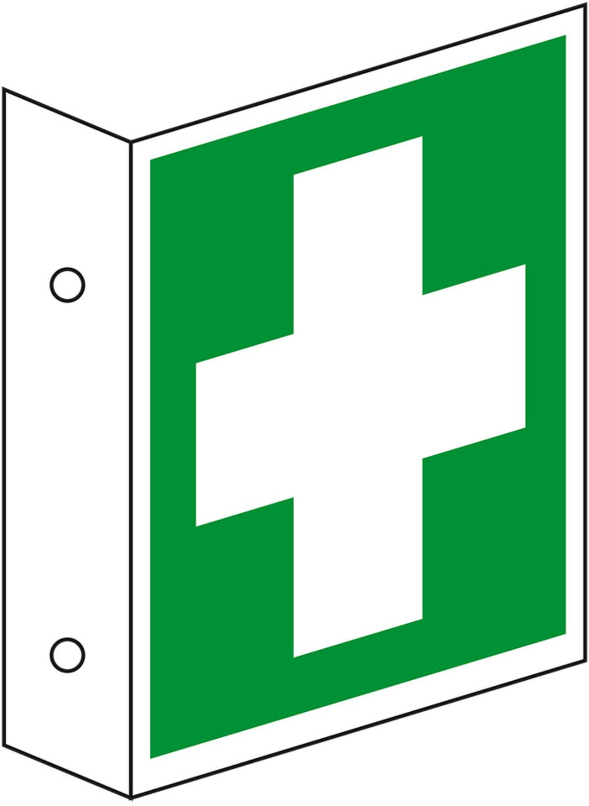 KSIGN Rettungszeichen Fahnenschild Erste Hilfe ASR/ISO Kunststoff