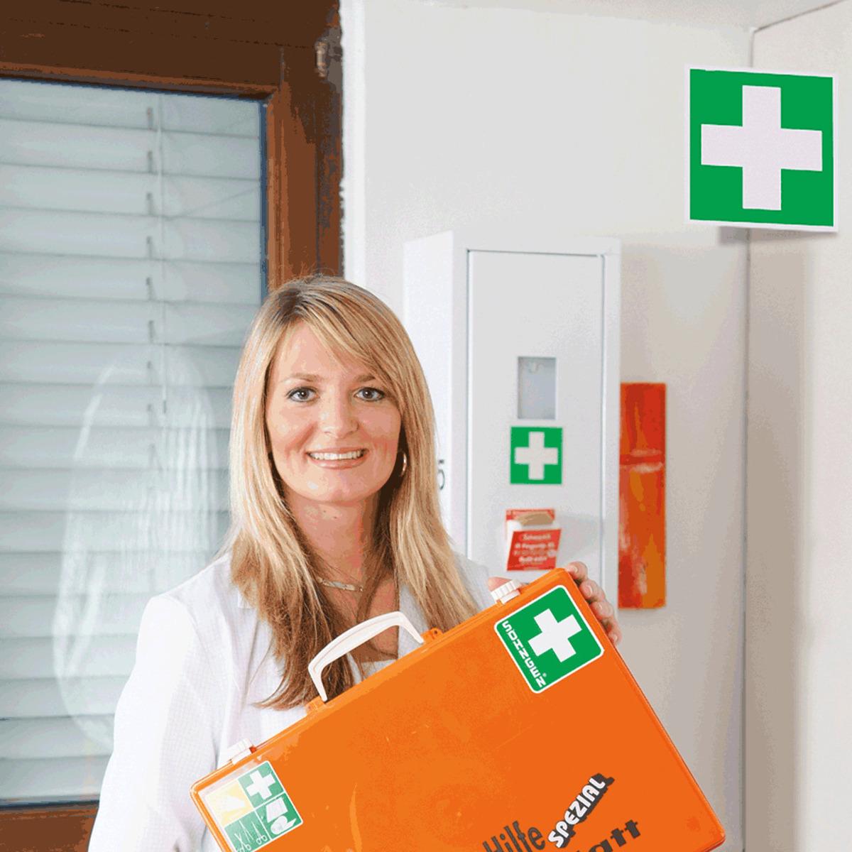 Mit dem Rettungszeichen "Erste Hilfe" schützen Sie Leben und Gesundheit Ihrer Mitarbeiter, indem Sie Notfalleinrichtungen eindeutig kennzeichnen.