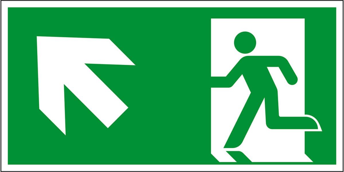 KSIGN Rettungszeichen Notausgang, Richtungspfeil links aufwärts ASR/ISO Kunststoff