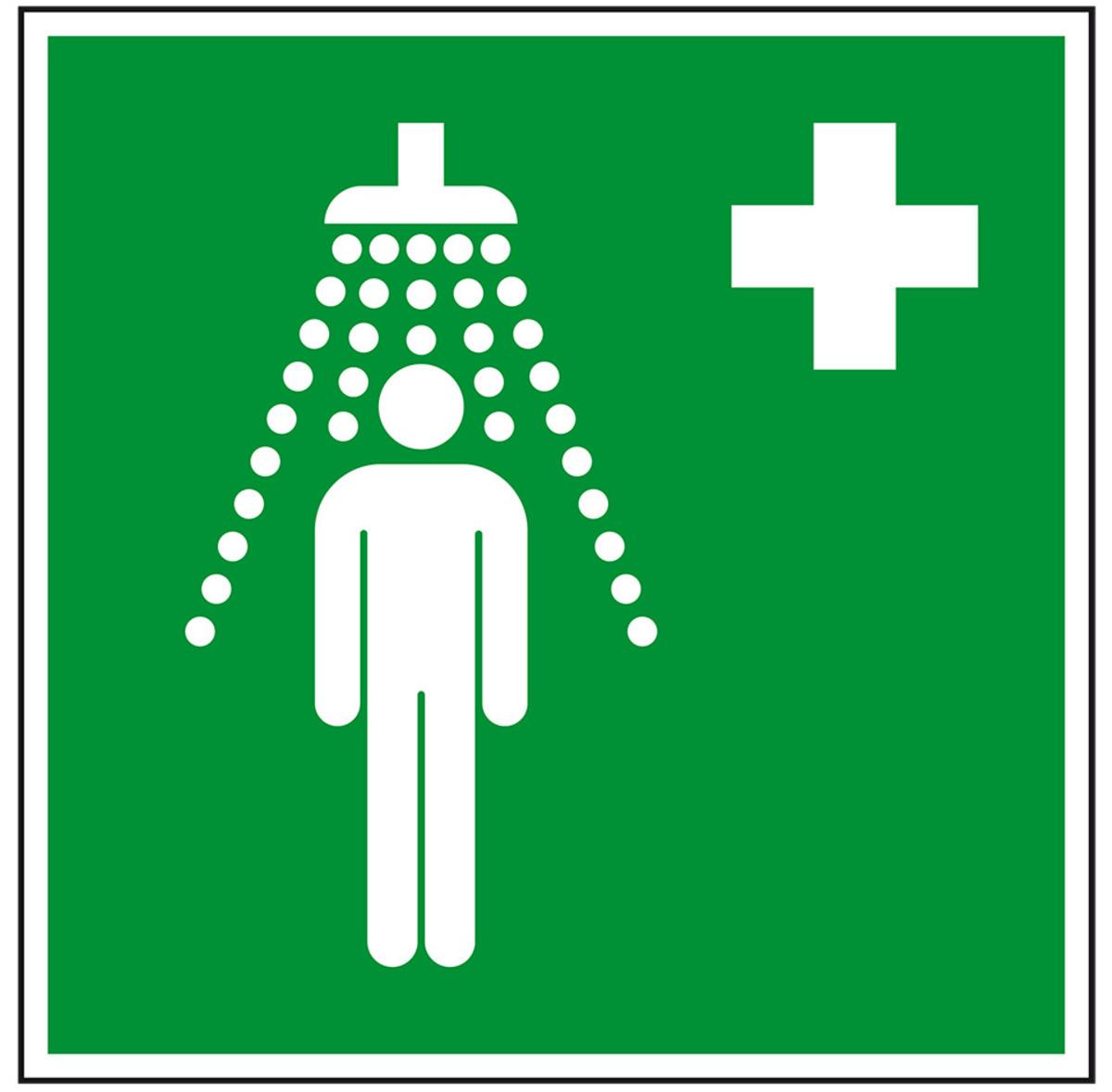 MIt dem Rettungszeichen "Notdusche" schützen Sie Leben und Gesundheit Ihrer Mitarbeiter, indem Sie Notfalleinrichtungen eindeutig kennzeichnen.