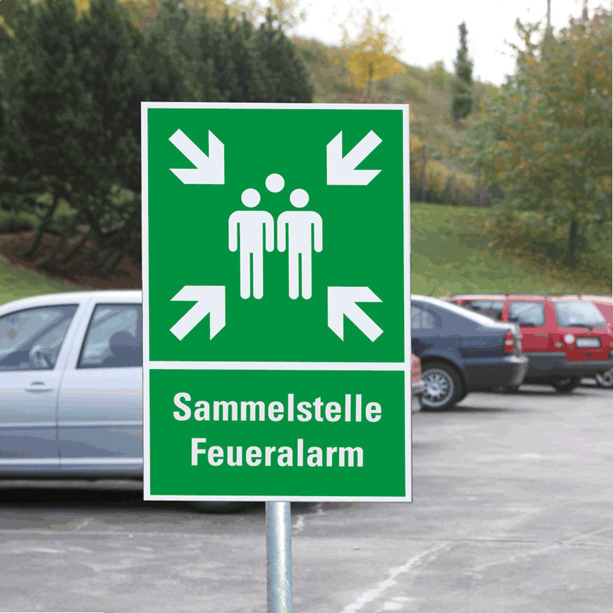 Mit dem Rettungszeichen "Sammelstelle" mit Text nach Wunsch schützen Sie Leben und Gesundheit Ihrer Mitarbeiter und/oder Besucher, indem Sie Rettungswege und Notfalleinrichtungen eindeutig kennzeichnen.
