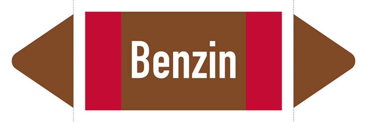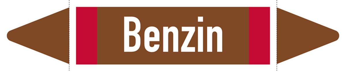 Auswahl: Rohrleit.etikett Benzin, DIN 2403, braun/weiß/rot, für Ø 40-60mm, 218x37mm, 5/Bogen