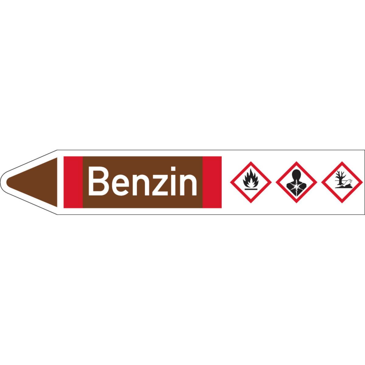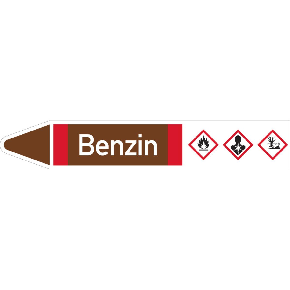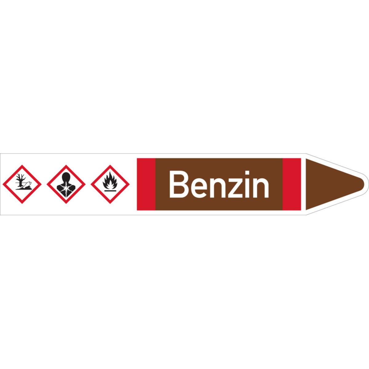 Auswahl: RKZ-Etikett Benzin, rechts, DIN, braun/weiß/rot, für Ø 15-25mm, 96x17mm, 8/Bogen