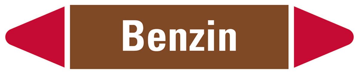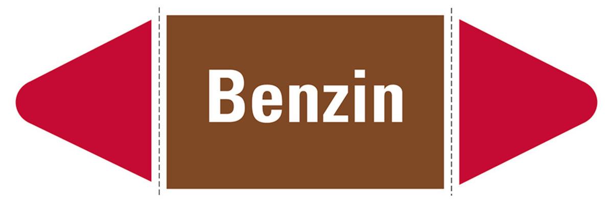 Auswahl: Rohrleitungsetikett Benzin, braun/weiß/rot, für Ø 15-25mm, 96x17mm, 2/Bogen