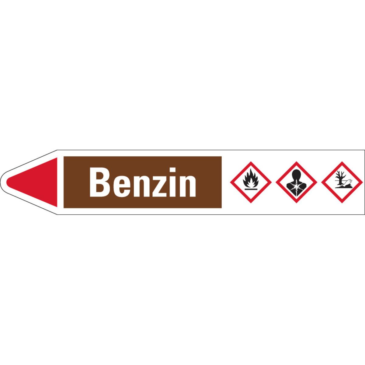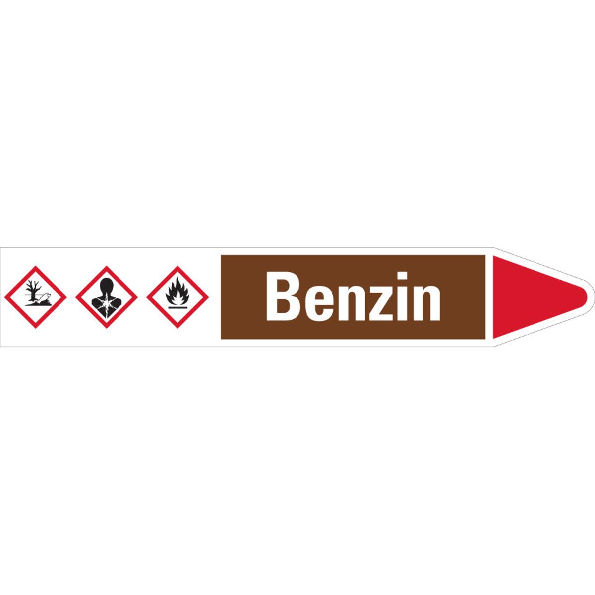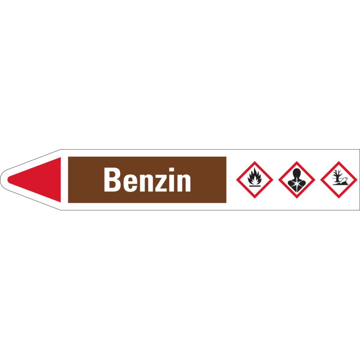 Auswahl: RKZ-Etikett Benzin, rechts, braun/weiß/rot, für Ø 15-25mm, 96x17mm, 8/Bogen