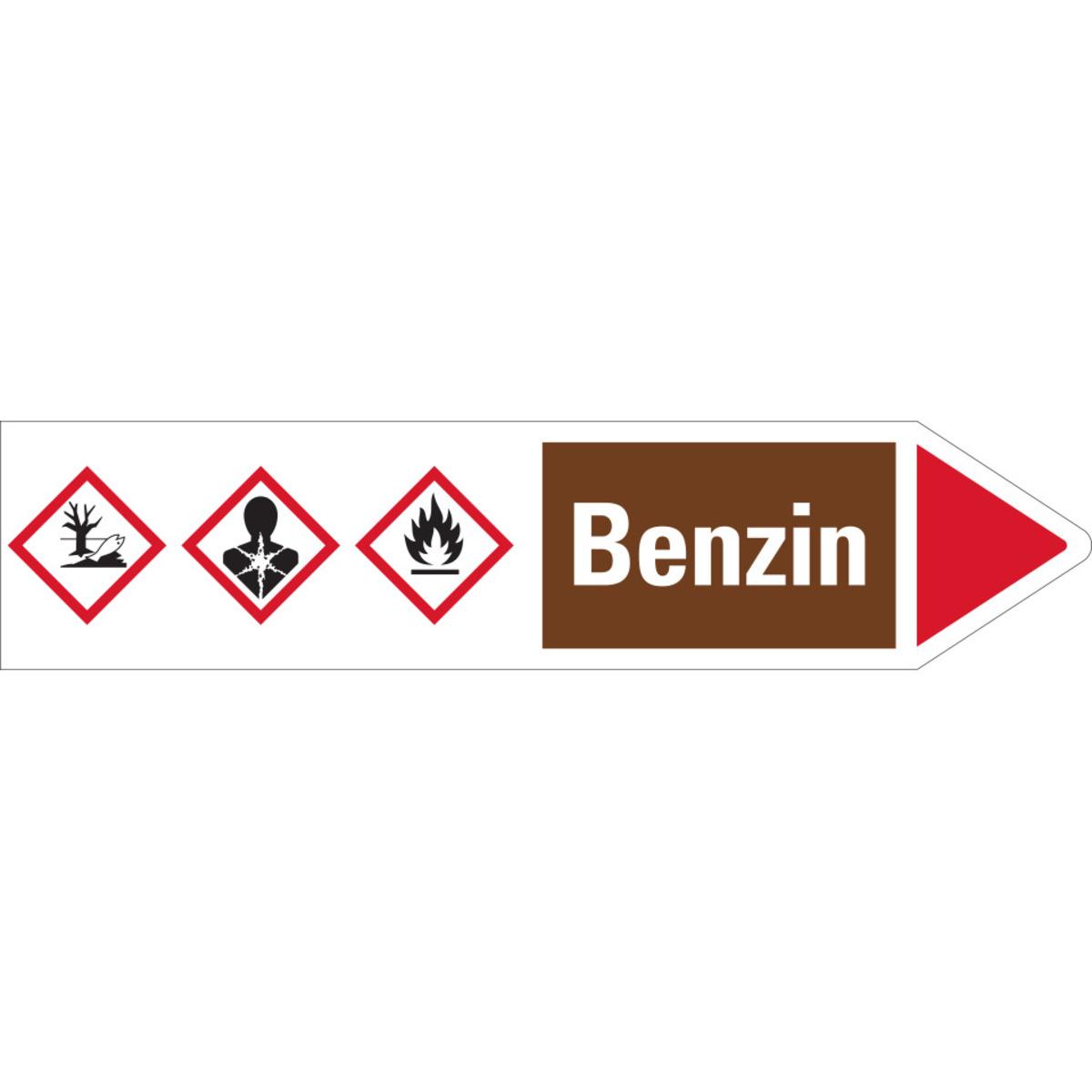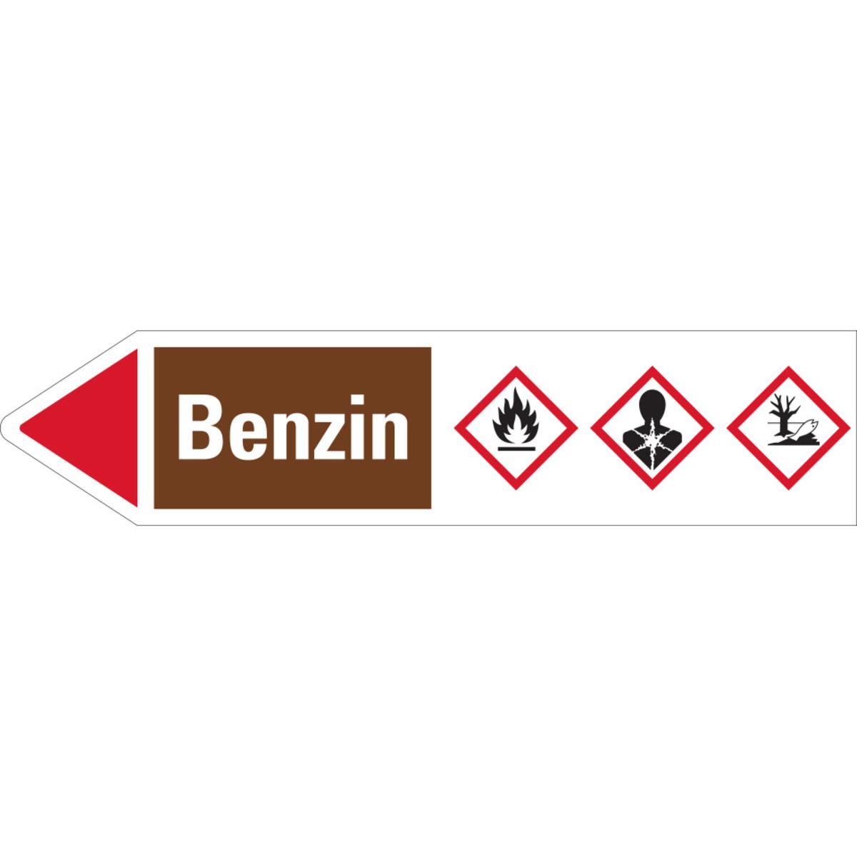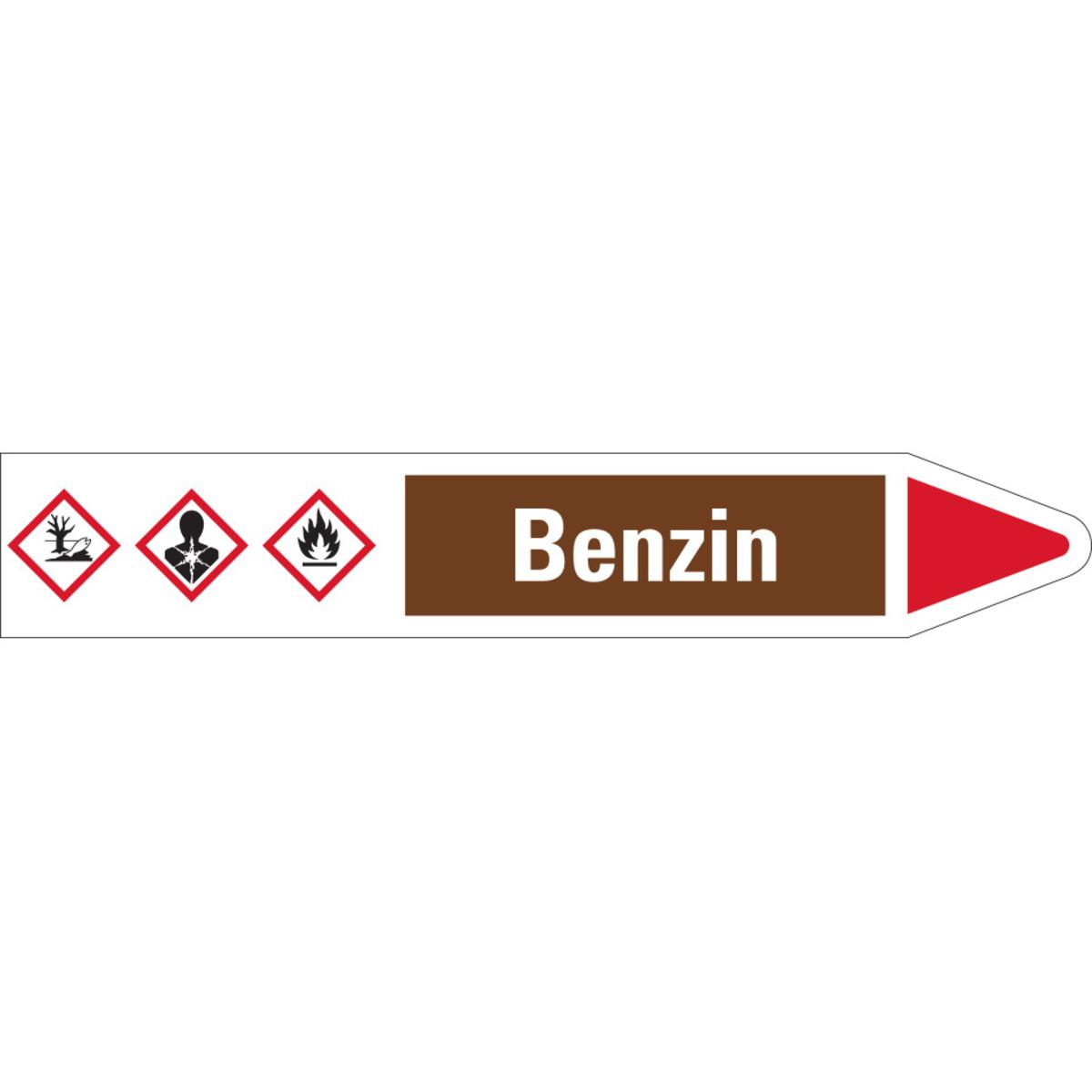 Auswahl: RKZ-Etikett Benzin, rechts, braun/weiß/rot, für Ø 15-25mm, 96x17mm, 8/Bogen