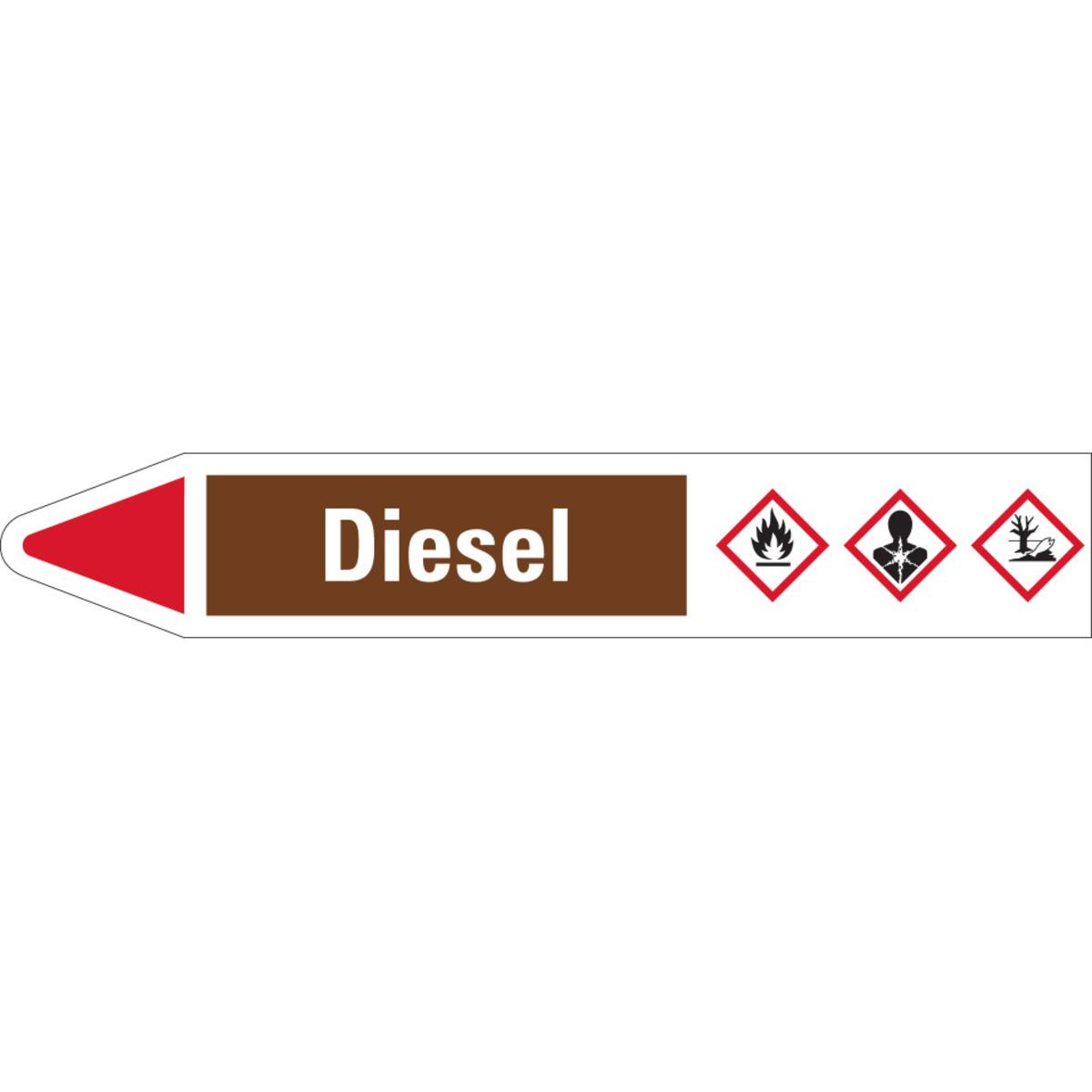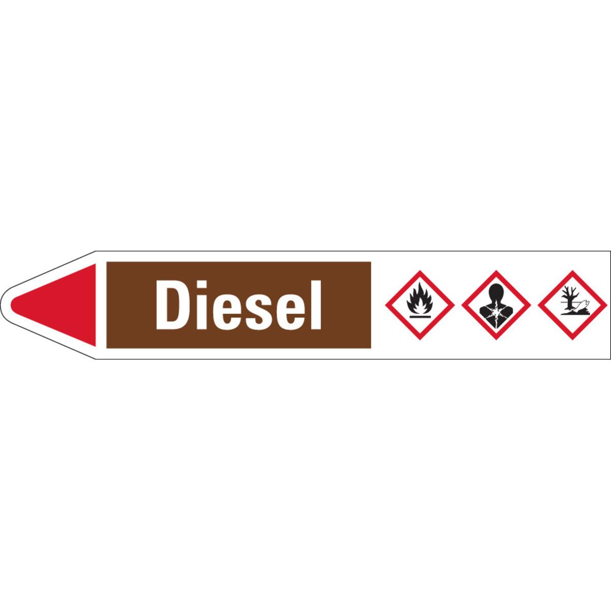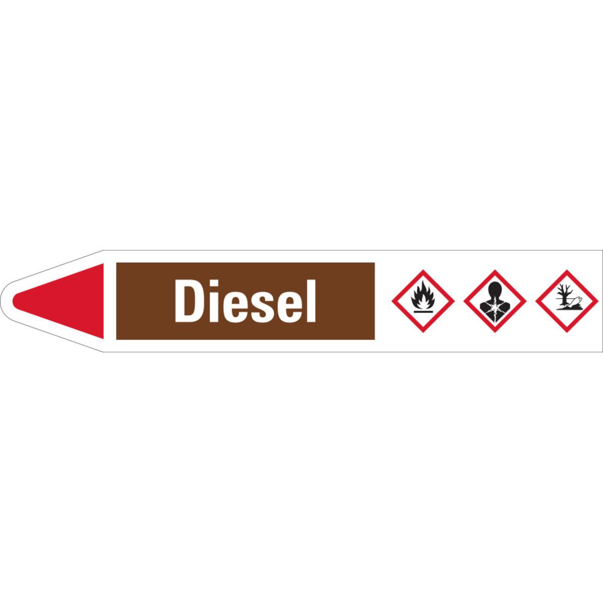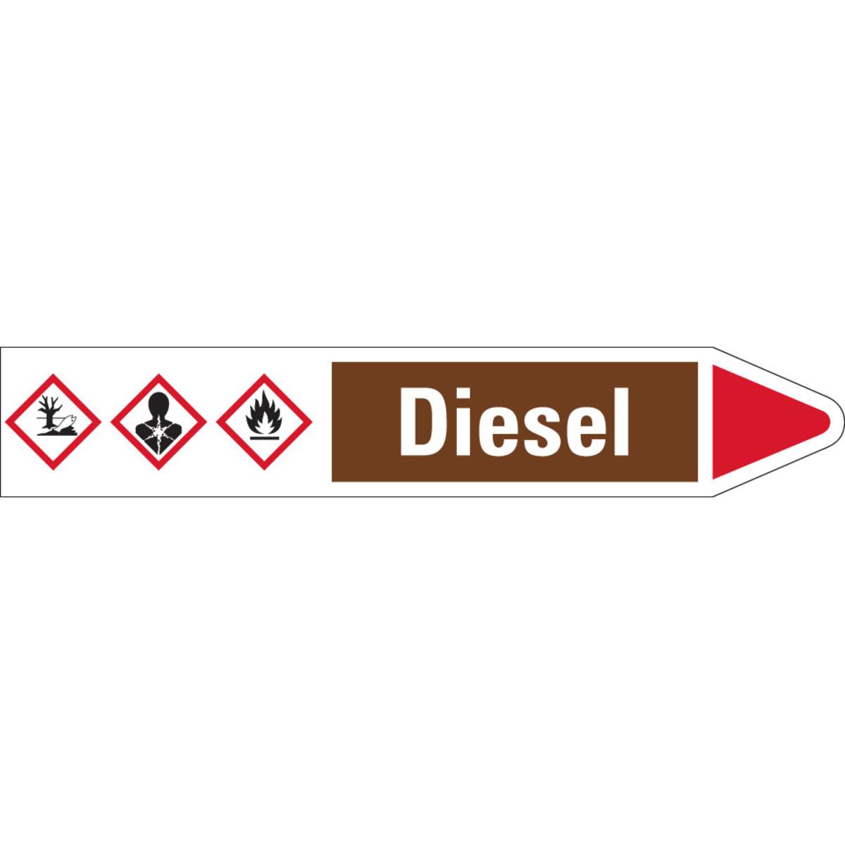 KSIGN Rohrleitungs-Einzeletikett Brennbare Flüssigkeiten & Feststoffe Diesel praxisbewährt