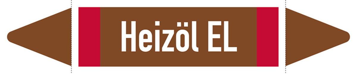 Auswahl: Rohrleit.etikett Heizöl EL, DIN 2403, braun/weiß/rot, f. Ø 40-60mm, 218x37mm, 5/Bogen