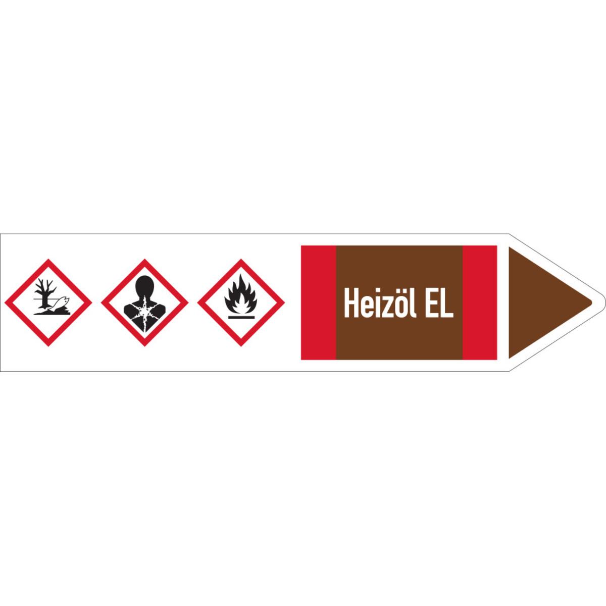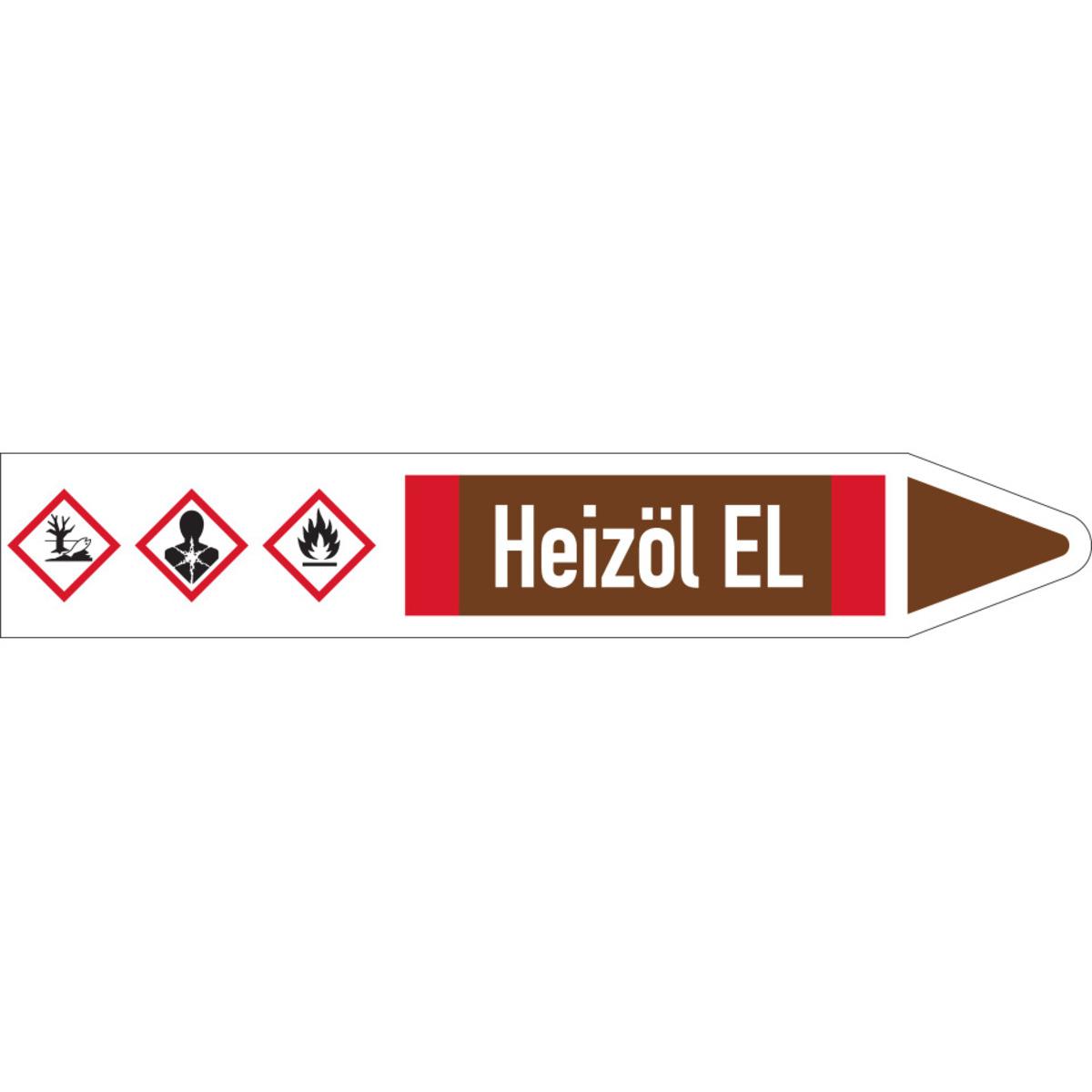 Auswahl: RKZ-Etikett Heizöl EL, rechts, DIN 2403, braun/weiß/rot, Ø 40-60mm, 218x37mm, 5/Bogen
