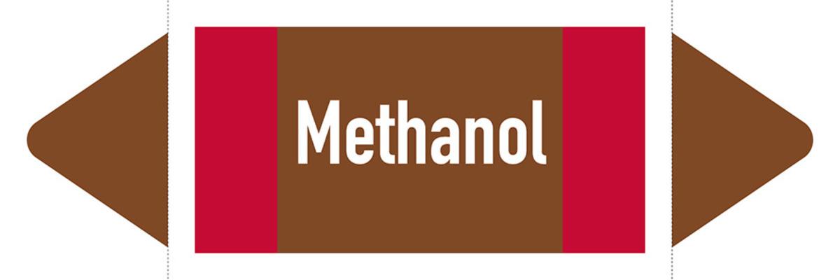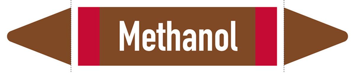 Auswahl: Rohrleitungsetikett Methanol, DIN 2403, braun/weiß/rot, ab Ø 90mm, 440x100mm, 2/Bogen