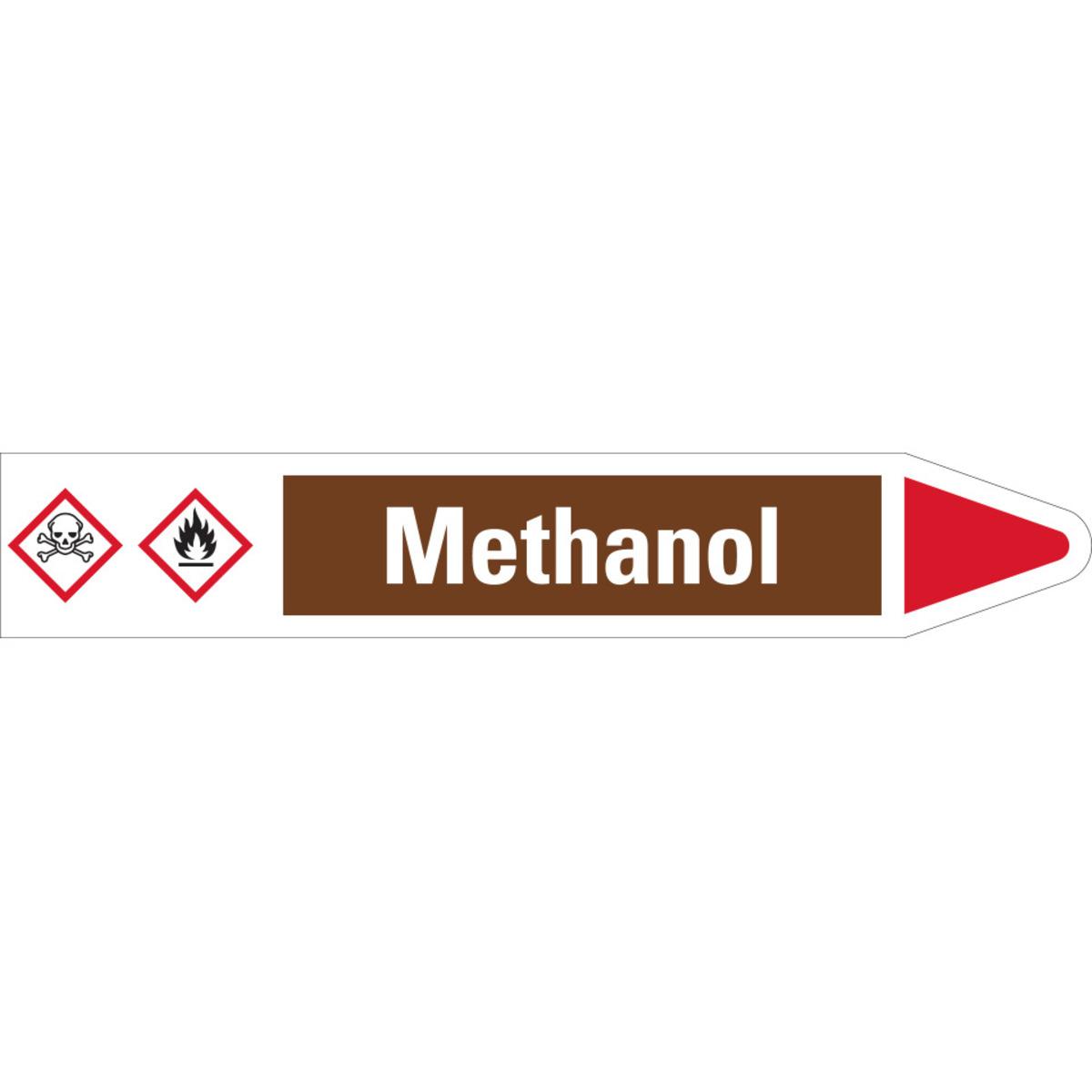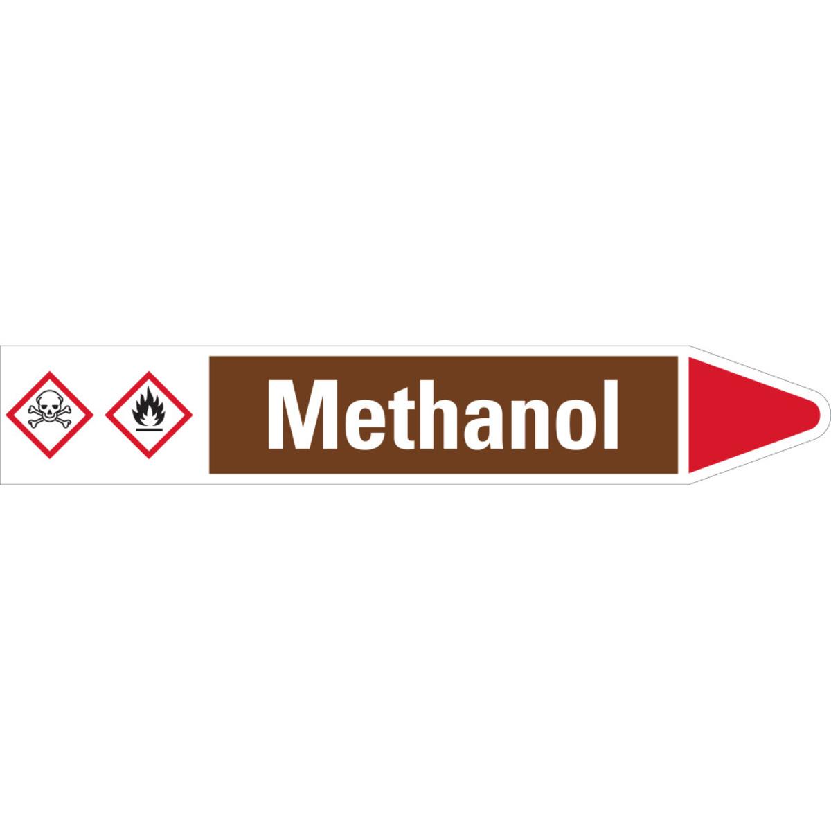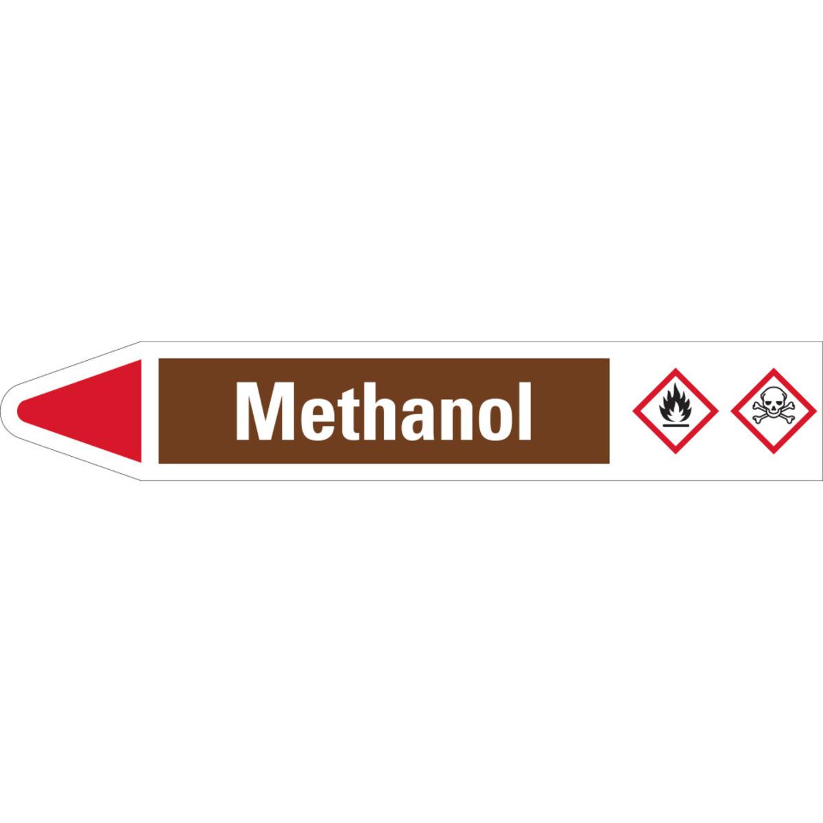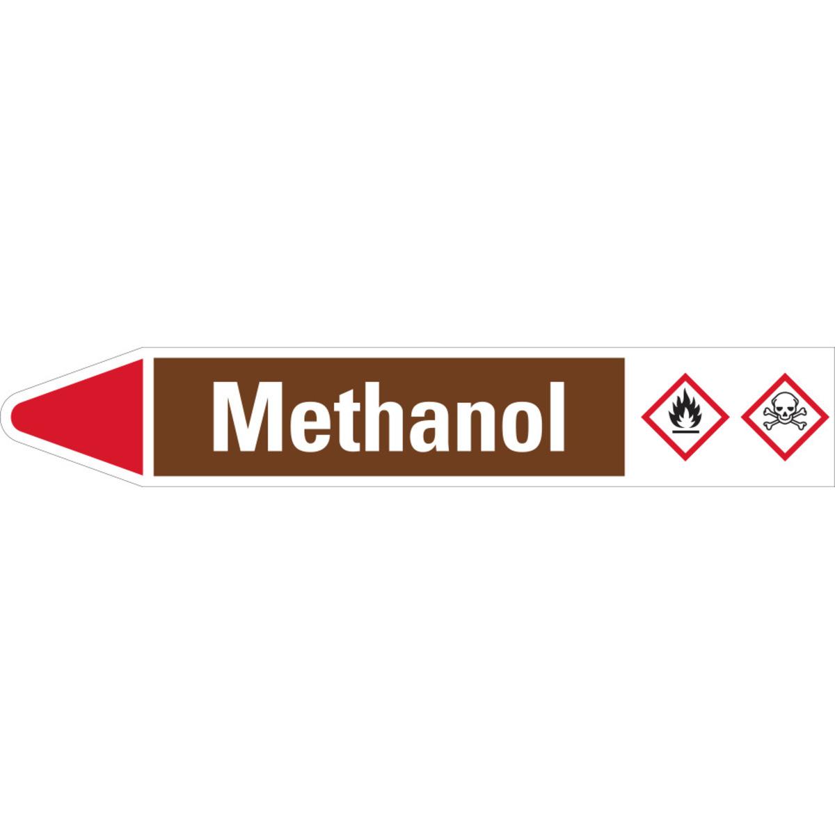 Auswahl: RKZ-Etikett Methanol, links, braun/weiß/rot, für Ø 60-90mm, 310x52mm, 3/Bogen