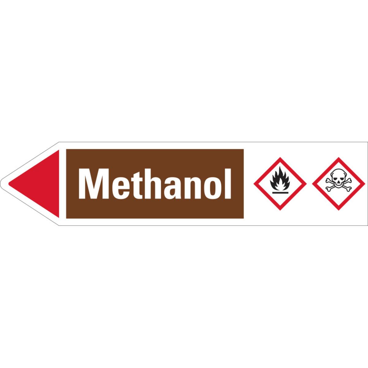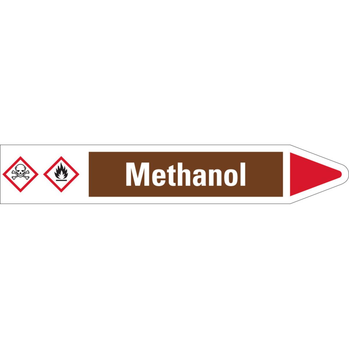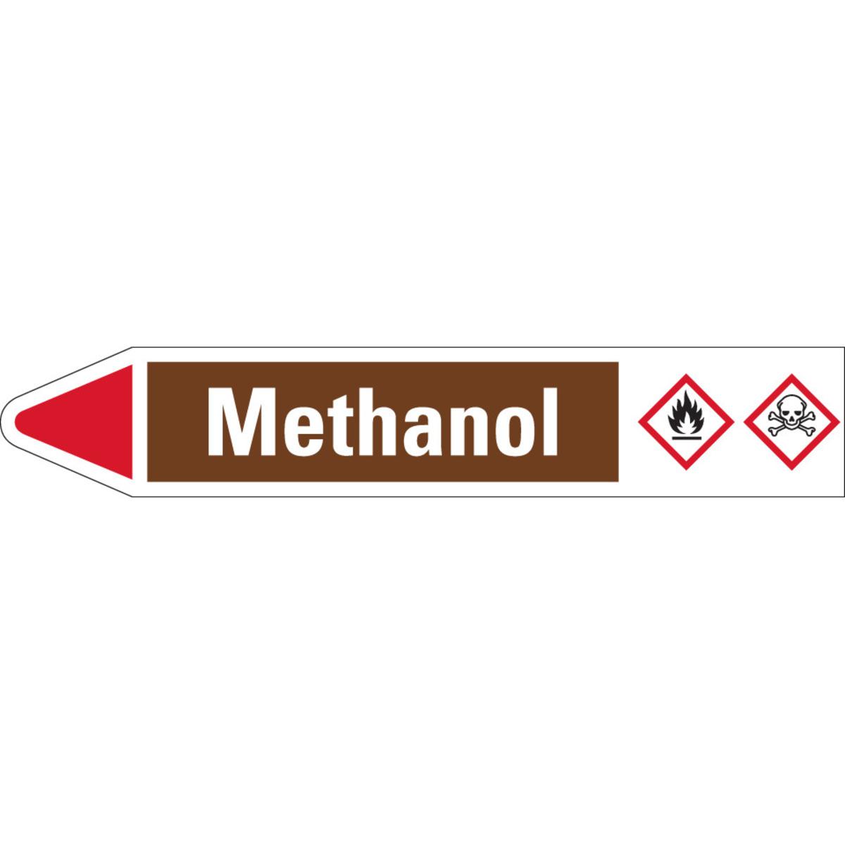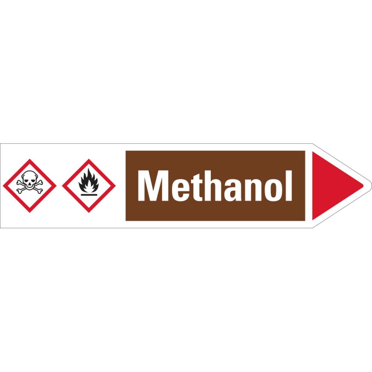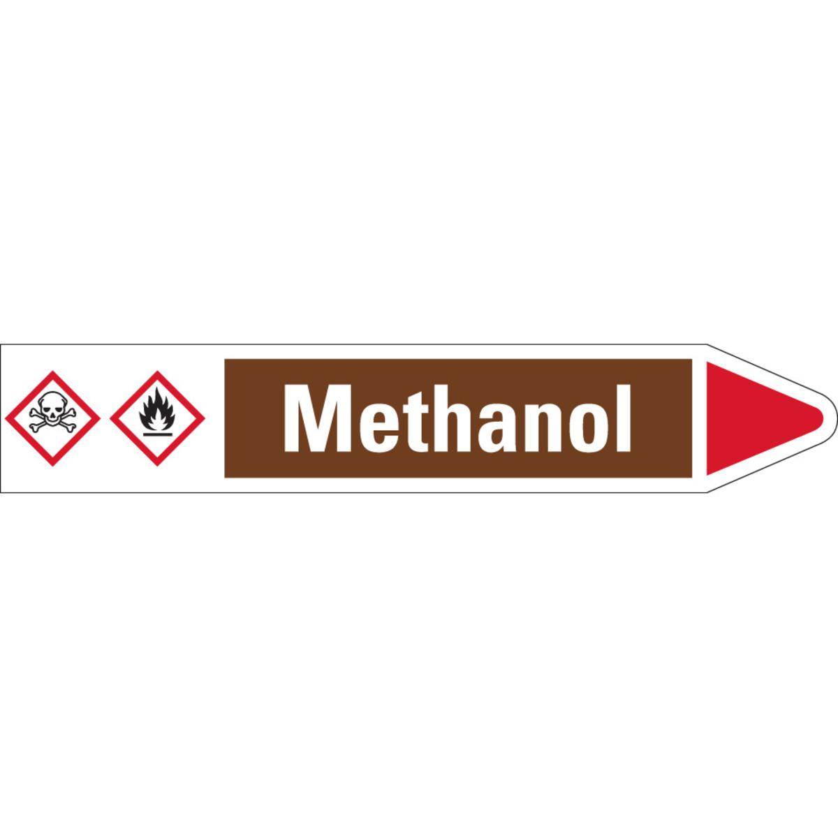 Auswahl: RKZ-Etikett Methanol, links, braun/weiß/rot, für Ø 60-90mm, 310x52mm, 3/Bogen