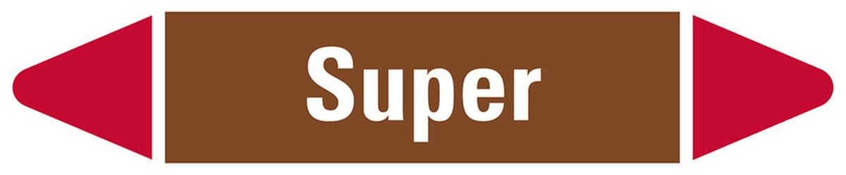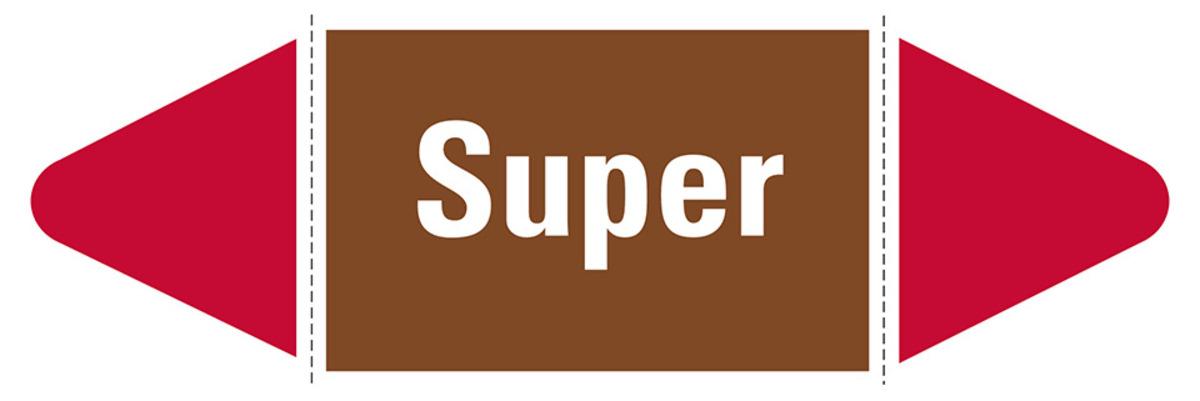 Auswahl: Rohrleitungsetikett Super, braun/weiß/rot, für Ø 25-40mm, 154x26mm, 5/Bogen