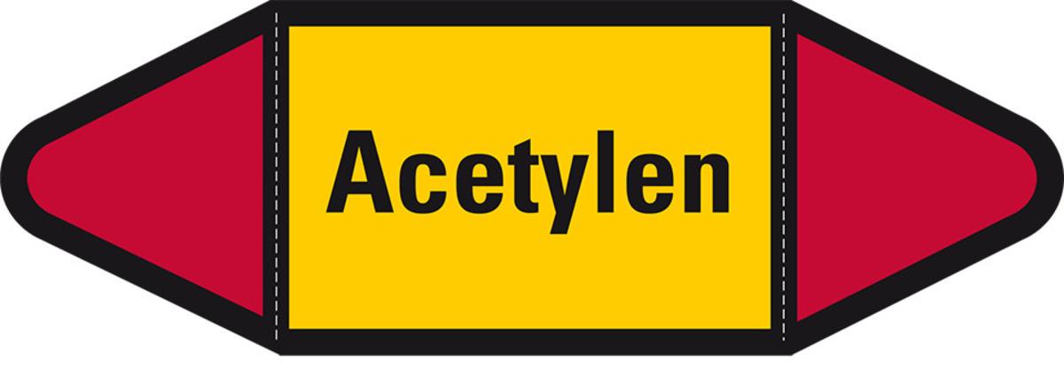 Auswahl: Rohrleitungsetikett Acetylen, gelb/schwarz/rot, für Ø 60-90mm, 310x52mm, 3/Bogen