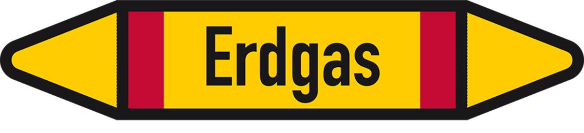 Auswahl: Rohrleit.etikett Erdgas, DIN 2403, gelb/schwarz/rot, für Ø 25-40mm, 154x26mm, 5/Bogen