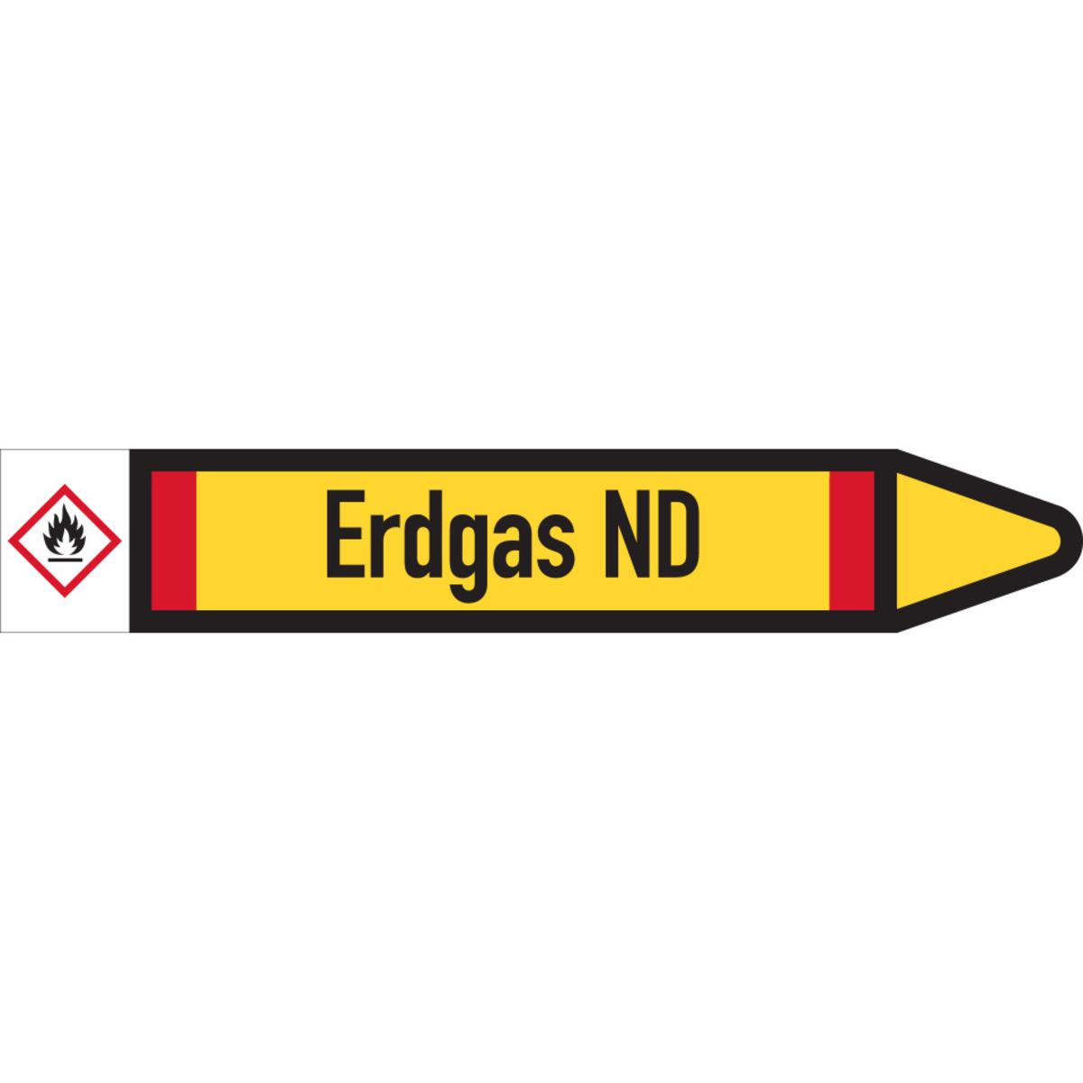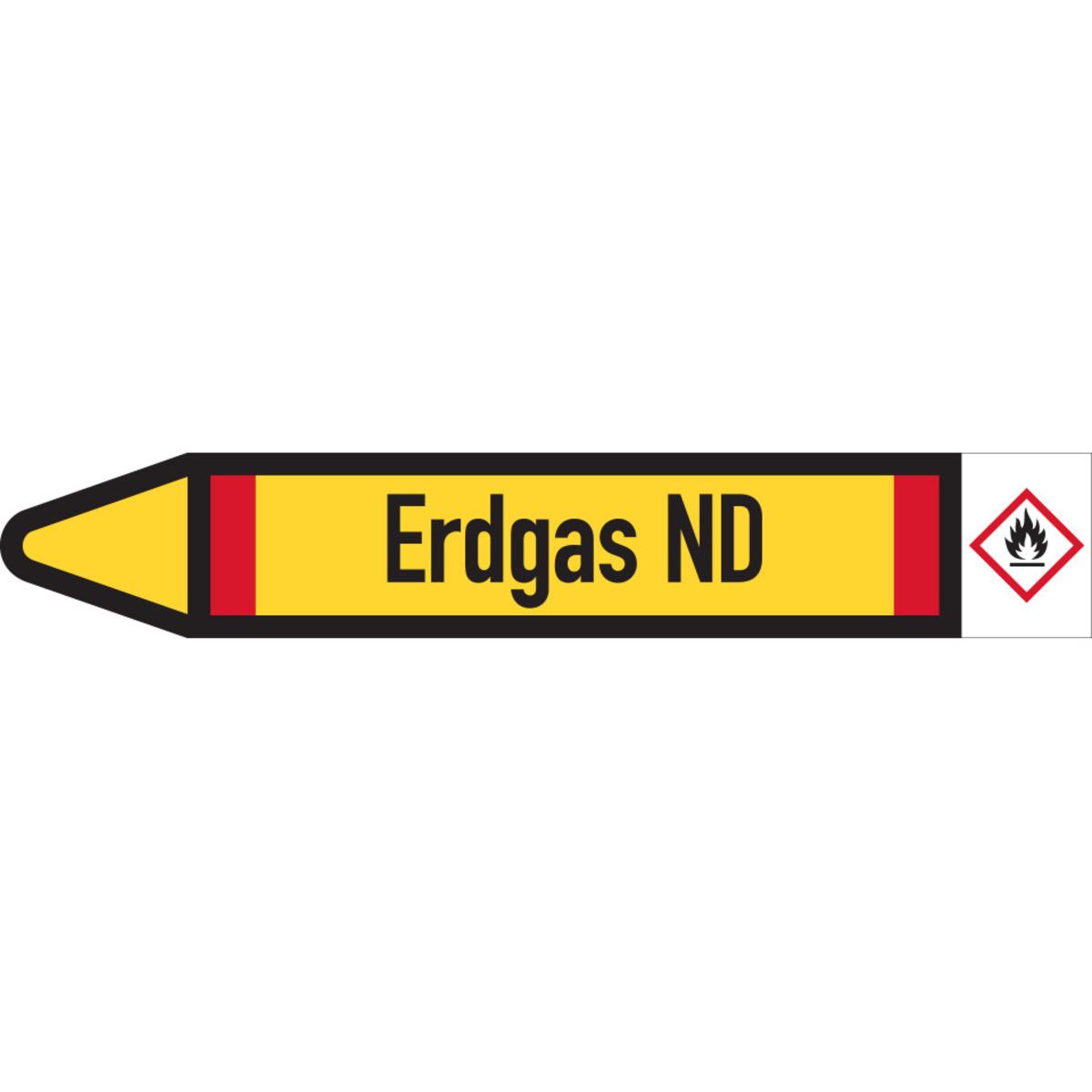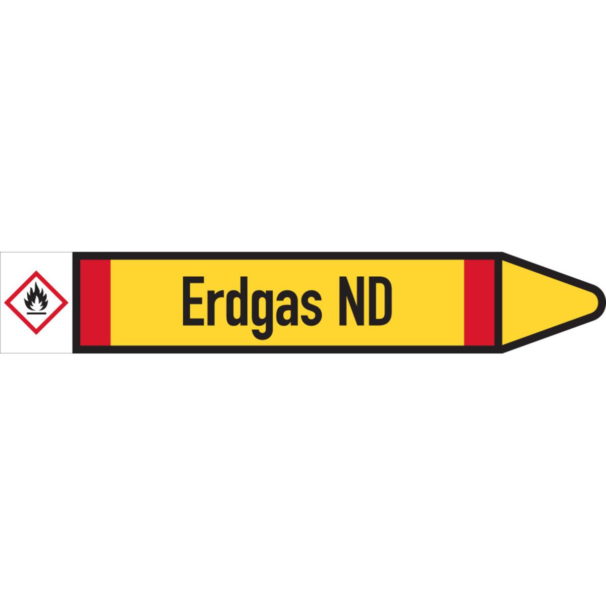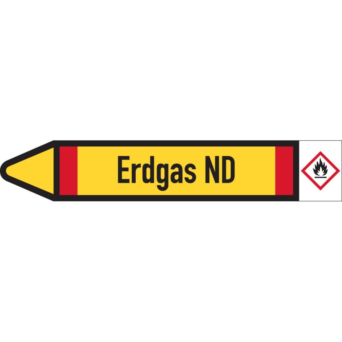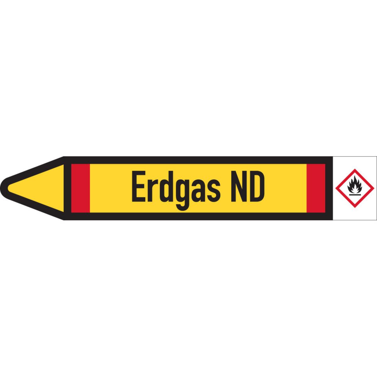 KSIGN Rohrleitungs-Einzeletikett Brennbare Gase Erdgas ND DIN 2403