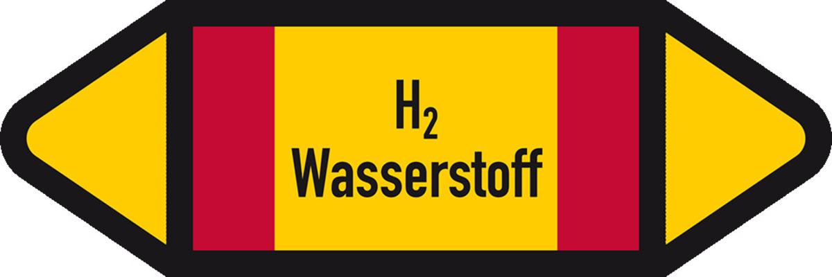 KSIGN Rohrleitungs-Einzeletikett Brennbare Gase H2 Wasserstoff DIN 2403