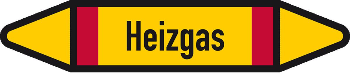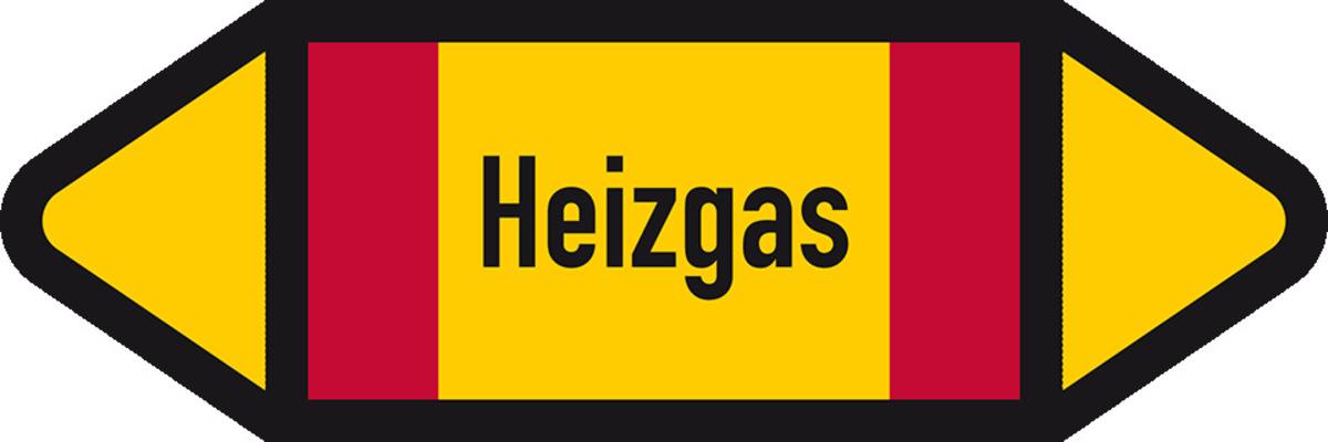 Auswahl: Rohrleit.etikett Heizgas, DIN 2403, gelb/schwarz/rot, f. Ø 25-40mm, 154x26mm, 5/Bogen