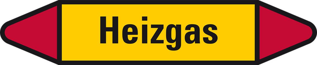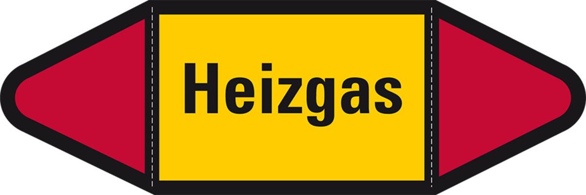 Auswahl: Rohrleitungsetikett Heizgas, gelb/schwarz/rot, für Ø 25-40mm, 154x26mm, 5/Bogen