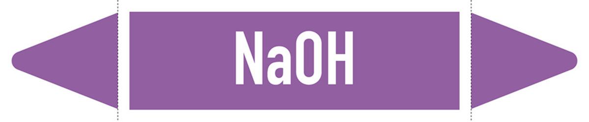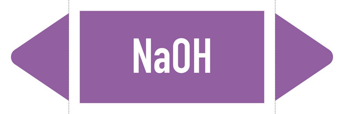 Auswahl: Rohrleitungsetikett NaOH, DIN 2403, violett/weiß, für Ø 25-40mm, 154x26mm, 5/Bogen