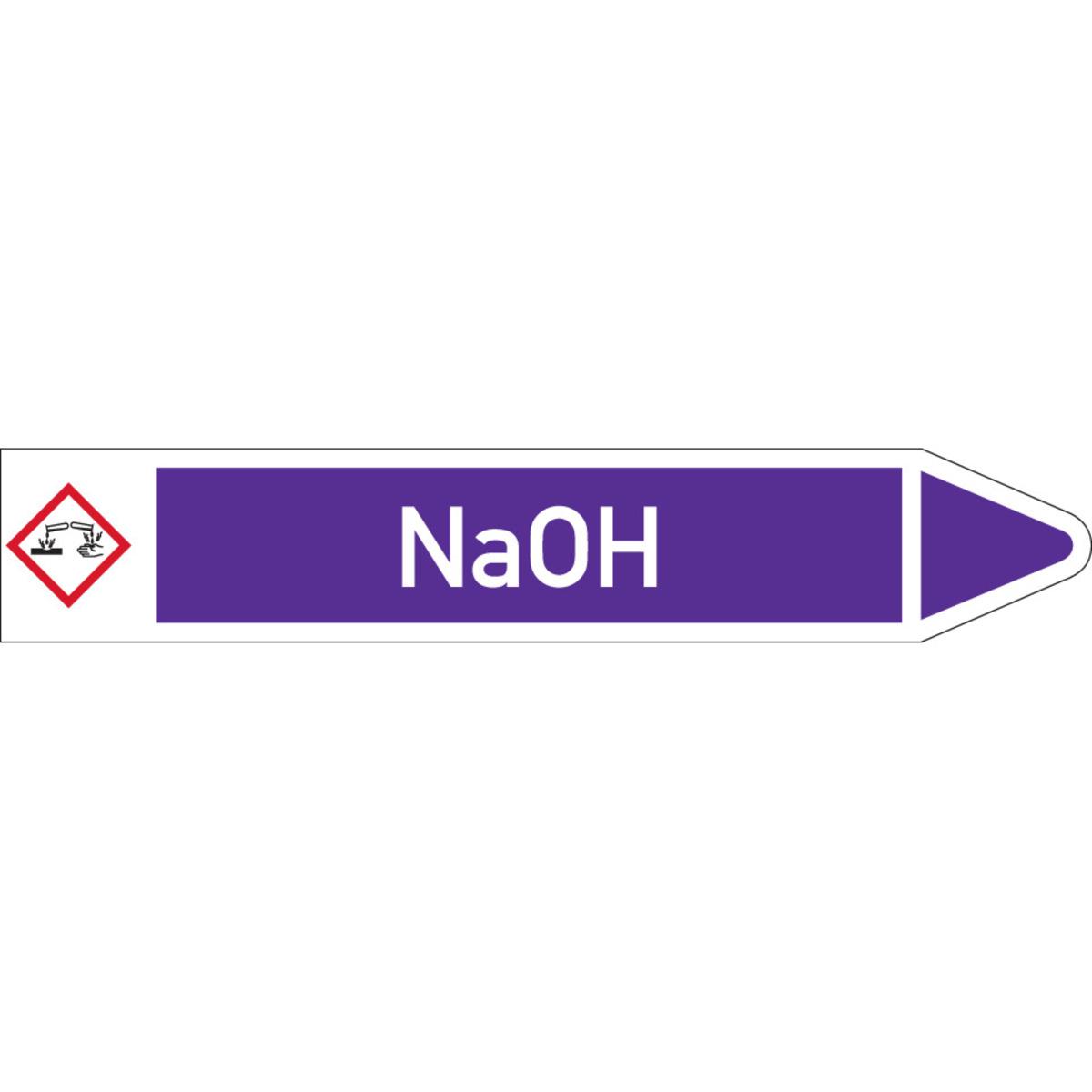 Auswahl: RKZ-Etikett NaOH, rechts, DIN, violett/weiß, für Ø 15-25mm, 96x17mm, 8/Bogen