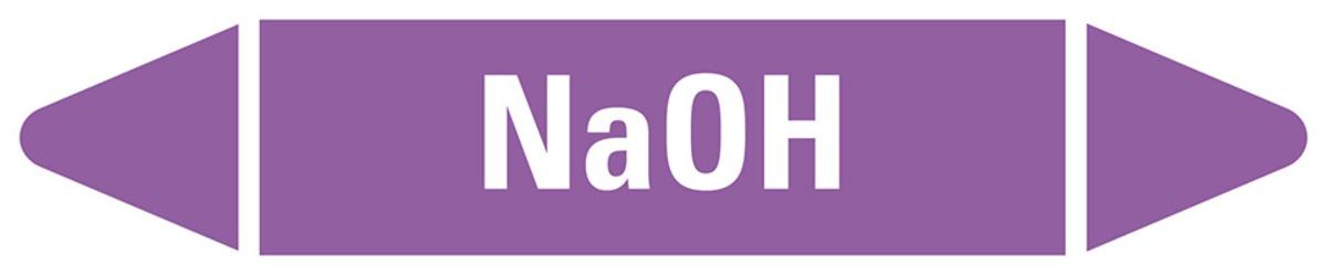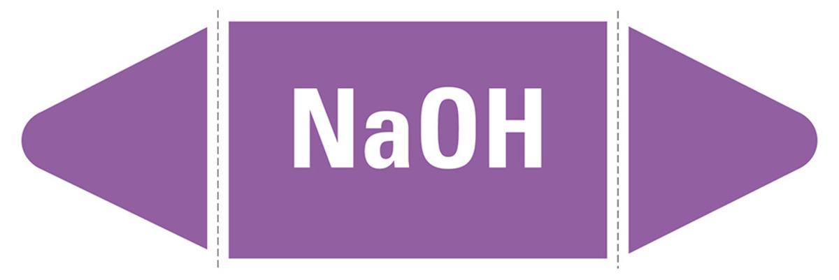 Auswahl: Rohrleitungsetikett NaOH, violett/weiß, für Ø 15-25mm, 96x17mm, 8/Bogen