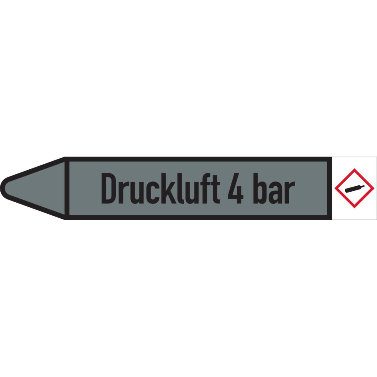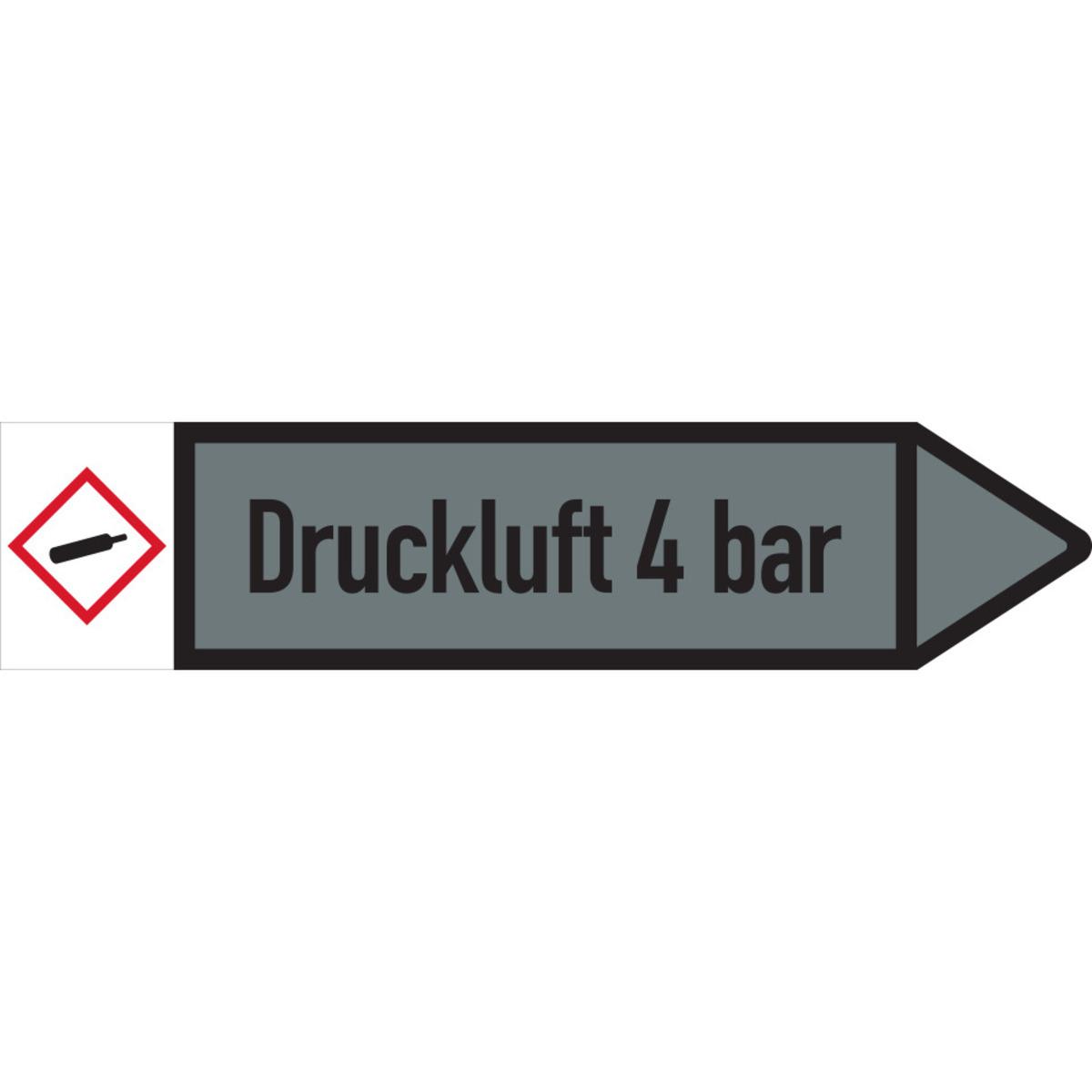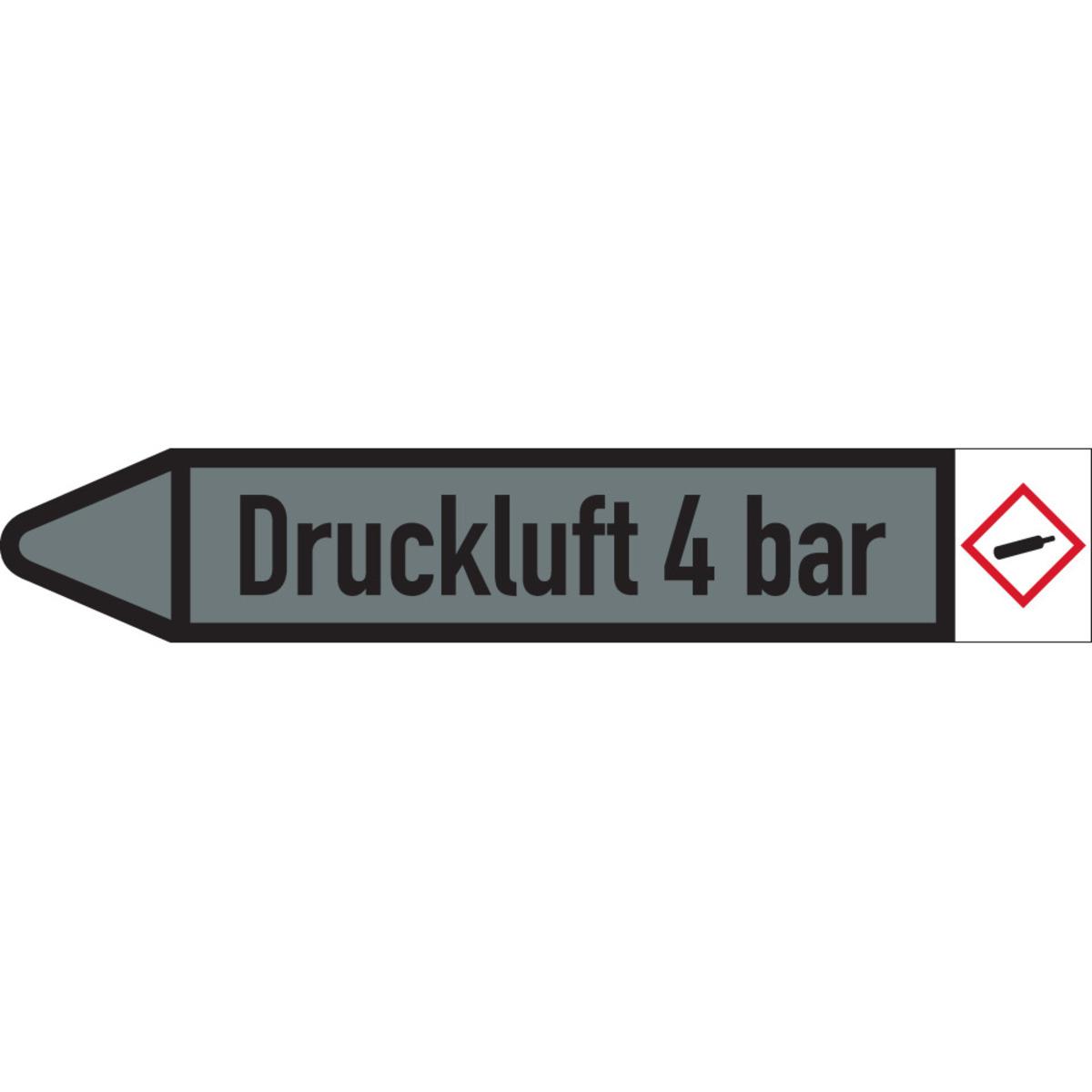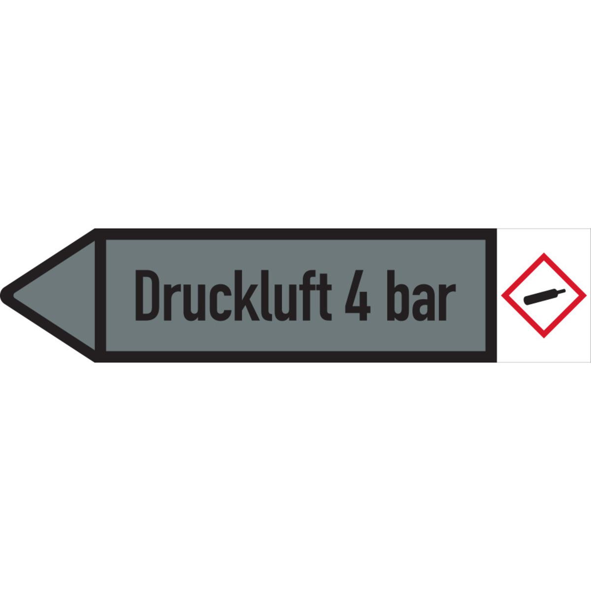 Auswahl: RKZ-Etikett Druckluft 4bar, links, DIN, grau/schwarz, Ø 60-90mm, 310x52mm, 3/Bogen